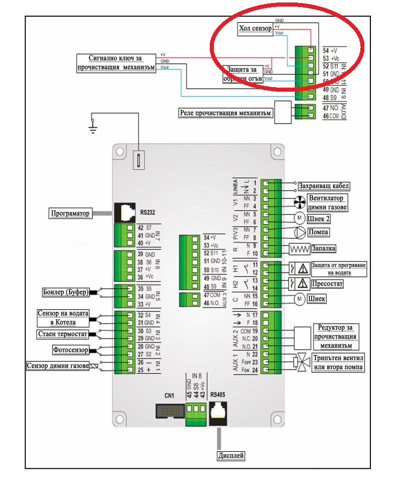 Горе на тая снимка дето съм заградил холл датчика на ключа " сигнално ключ на почистващият механизъм " при мен са само двата кабела на IN 9 . без плюса по по горното свързване .