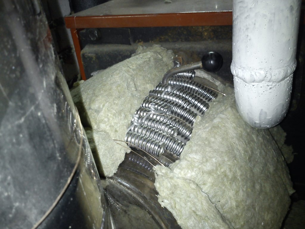 Относно въздуха... взимам го от едно дълбоко 2.5 метра мазе в което температурата не пада под 8 градуса. Този въздух преминава през една ф160мм ( по помен ) ПВЦ тръба заровена на около 1 метър под земята и дълга 12-15 метра и влиза в котелното. Там следва повторното затопляне в топлообменник дим-въздух което видяхте на снимките.