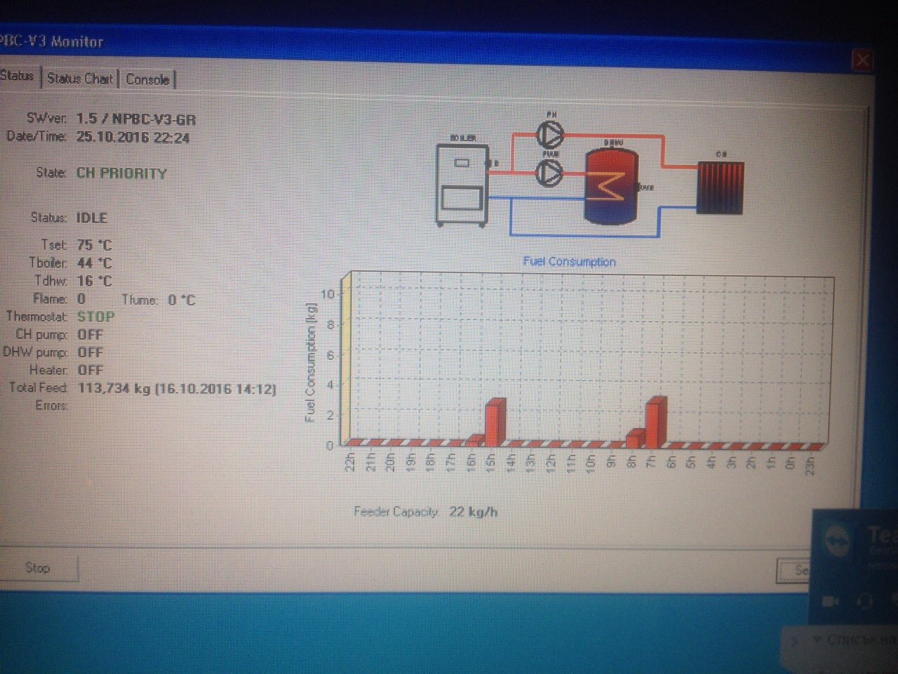 Хр. Христов качвам снимки със данните които поискахте за работата на котела за последните 24 часа. Ако имаш други въпроси ще ви отговоря. Извинявам се за качеството
