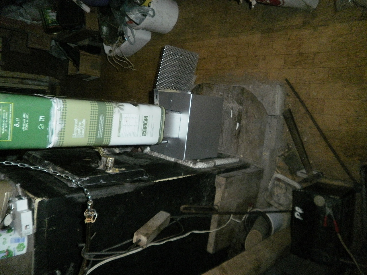 1.Температура на водата от 45 гр.се постигна след около 15 минути на макс след което се включи помпата.Разход на пелети/Велинградски/ на час-1 до 2 кг.Като след постигане на температура 45 гр.минавам на минимално горене.Това съм постигнал с една допълнителна клапа която е поставена пред предната решетка която се спуска и вдига според температурата на топлоносителя/водата/. Всичко това се направи с 3 м.шина-80/5мм;шина-40/5мм. 1 м.;електроди,гол.и малък флекс,и най важното желание и две ръце като задължително САМО ЕДНАТА ДА Е ЛЯВА!!