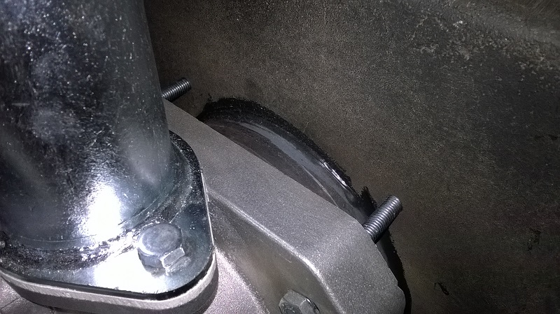 Жибото е много скъпо и за това правихме алтернатива. Пък и фрезиста малко се "оа.." - като е правил отвора е оставил фрезата да си работи сама и след като е пробила вътрешния отвор (откъм горивната камера), слизайки надолу през ватата се оказало, че вътрешната част на предния чугун е оребрена и когато ножа е минавал през гънките му е изместил с 3-4 мм. детайла... След това ни се обади... елате тук да видим какво ще правим... Видяхме и решихме да "вземе" елипсовидно външния отвор (този грешния) и да уеднакви спрямо вътрешния. В следствие се получи лека пролука в горната част на фланеца - около милиметър. За това уплътних и със силикон