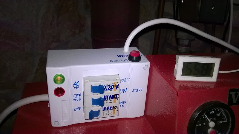 Незнам защо кефят си ме тези горелки , само дето заводско са с по висока минимална мощност 13,5 киловата .Пробвал ли си да намалиш мощността .Друго по ел таблото -все си мисля че захранването на ключа старт трябва да се взема през или както се казва след главния предпазител 220 в , така или иначе не можеш да стартираш ако не си захранил с ток горелката , ключа за шнека си е свързан добре