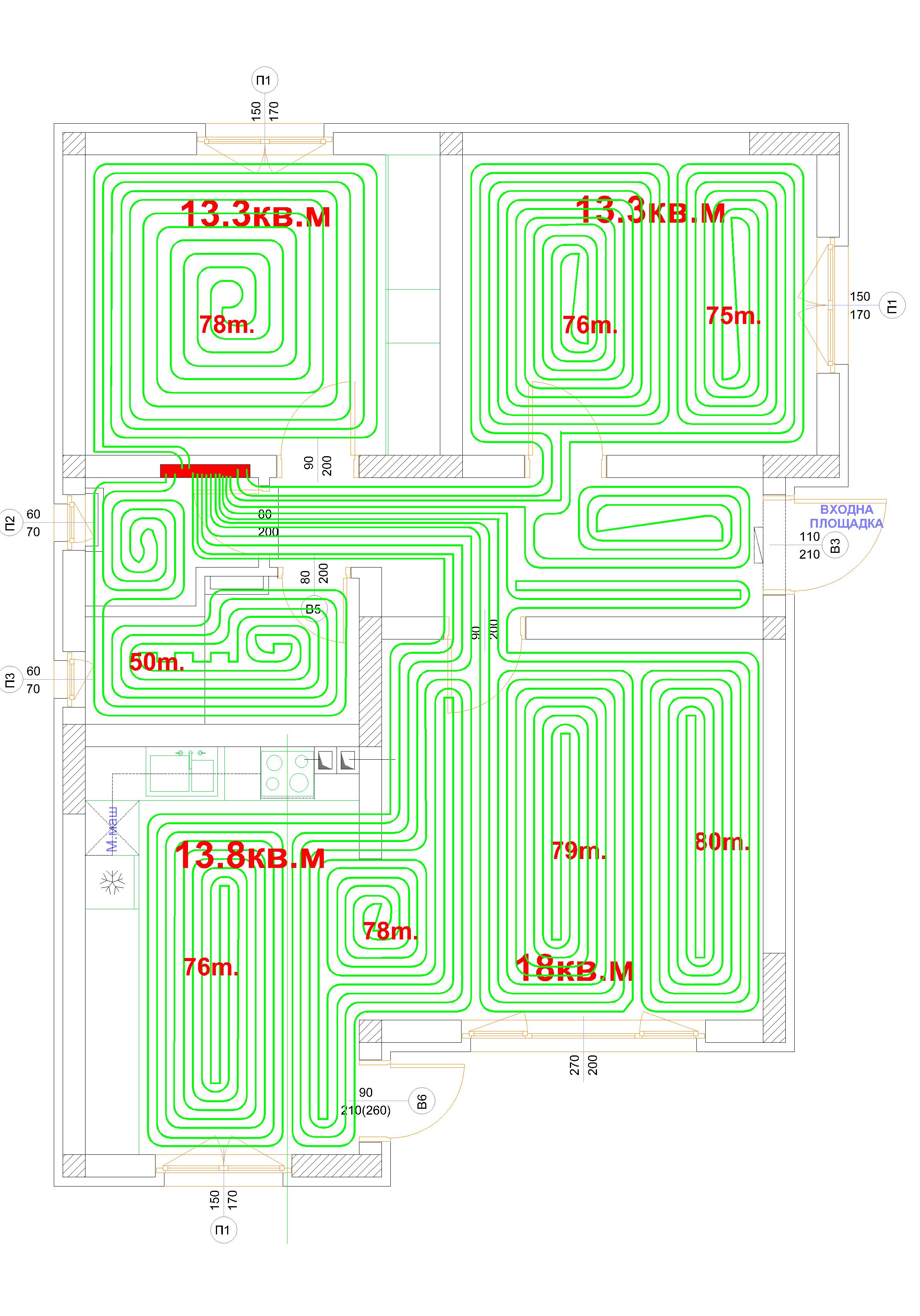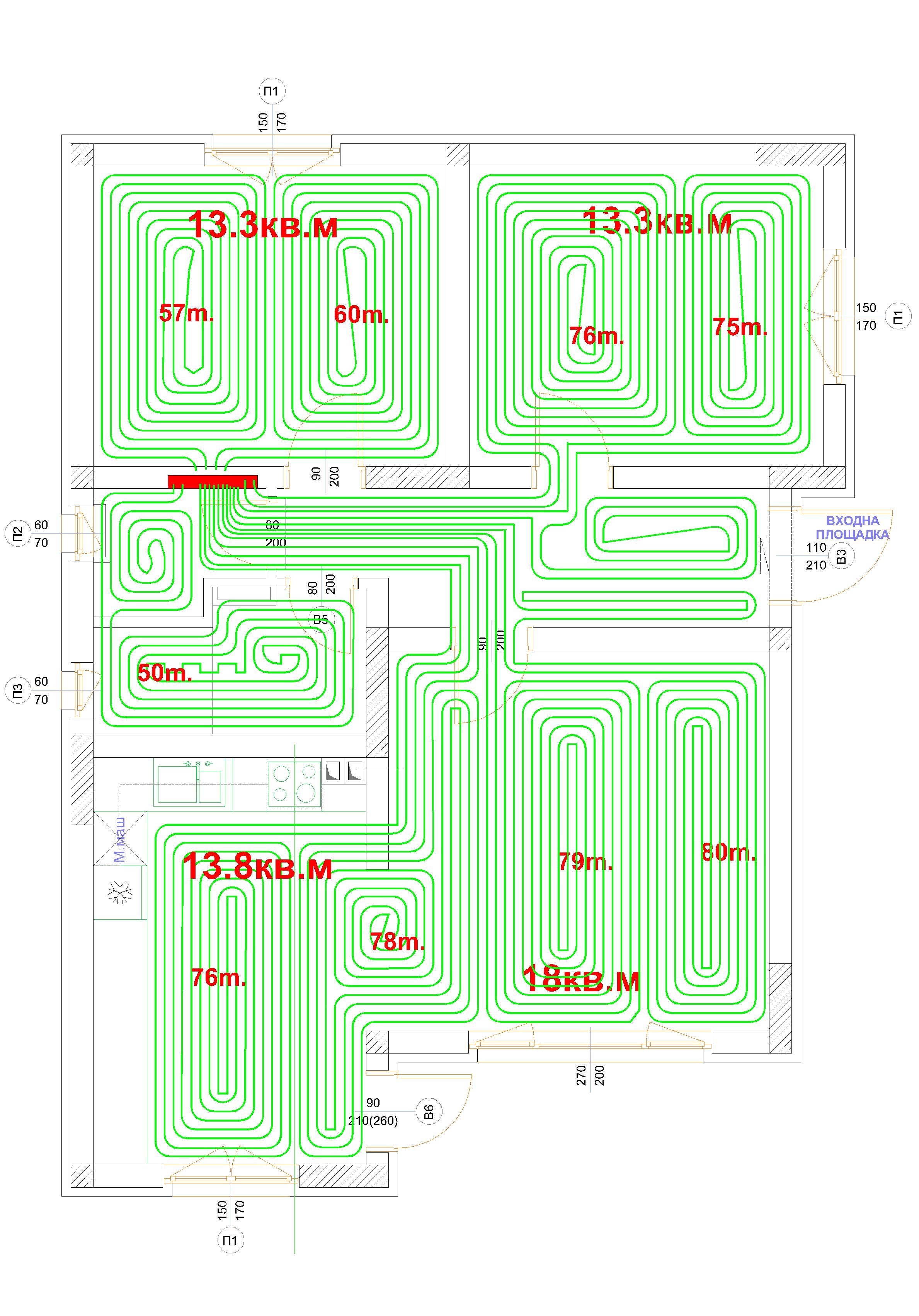 Няма да усложнявам колектора с дебитомери и затова съм гледал кръговете да са равни дължини.