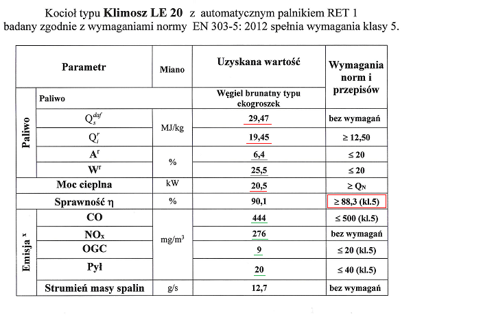 Мери се с газанализатор, но за лабораторен сертификат се мери и калоричността на горивото с горна топлина на изгаряне, работна топлина на изгаряне и влажност на работно гориво. За да се даде клас 5, какъвто пише че има Торч в сайта на Термосиликат, КПД за 20 kW котел трябва да е повече от 88,3 %. Сертификат за такова измерване Торч няма.