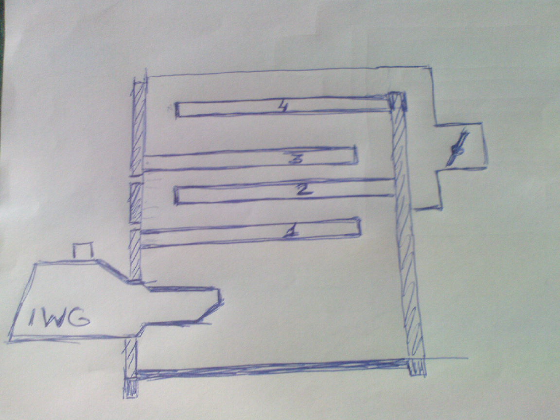 Е моя котел има същата ...хм.."архитектура".. Без да разбирам от термодинамика и да налагам мнение си мисля че това преграждане е проблема при теб и по специално посочените с 2 и 3(или 1 и 2)..по начина на слагане се получава така че топлиш предните врати с ултразагрятия пламък,топлината вместо да се отдава на задния сегмент на водната риза(по принцип той е с най-голяма мощност при виадрус) тя се отдава на места където няма ВР а има врати...След това-пламъка и дима обикалят и топлят някакви тухли и достигат горната част на сегментите вече с по-ниска температура..после защо котела ти изстивал бързо...Само с някакви прегради не се постига повишаване на кпд,самите прегради трябва да са част от водната риза за да се приеме за ход-както в нашия случай-нашите котли са двуходови-веднъж се топли долната част на оребрението и пламъка ги заобикаля и топли и от горната част на същото оребрение.Според мен с тези тухли,вместо да изпишеш вежди си избол очи :wink: .А и няма да се учудя ако там се събира яката пепел и пречи на пламъка...