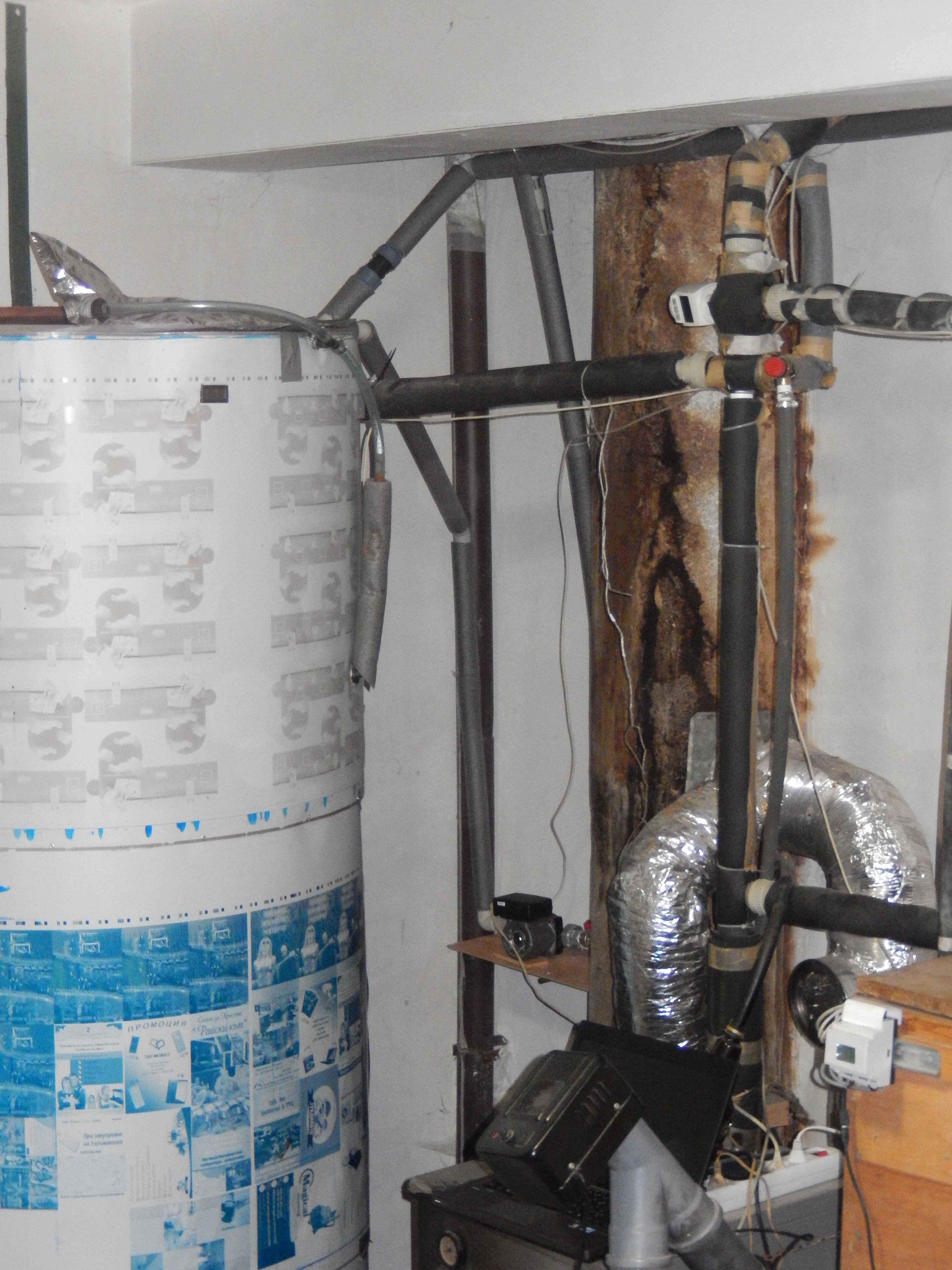 Буфера е пробит за серпентината и долния сензор, но не ми се занимаваше с източване на 1000 литра мека вода за нова дупка.