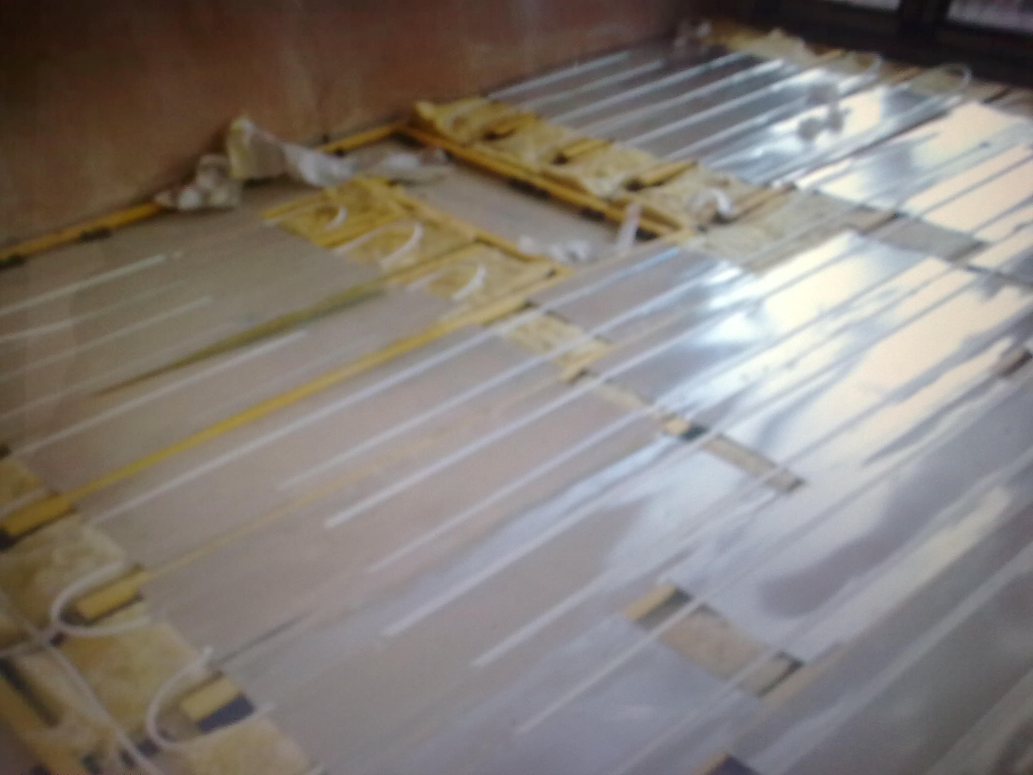 Това е подово отопление което видях в Англия.От горе се нареждат плоскости и над тях мокет или ламиниран паркет.