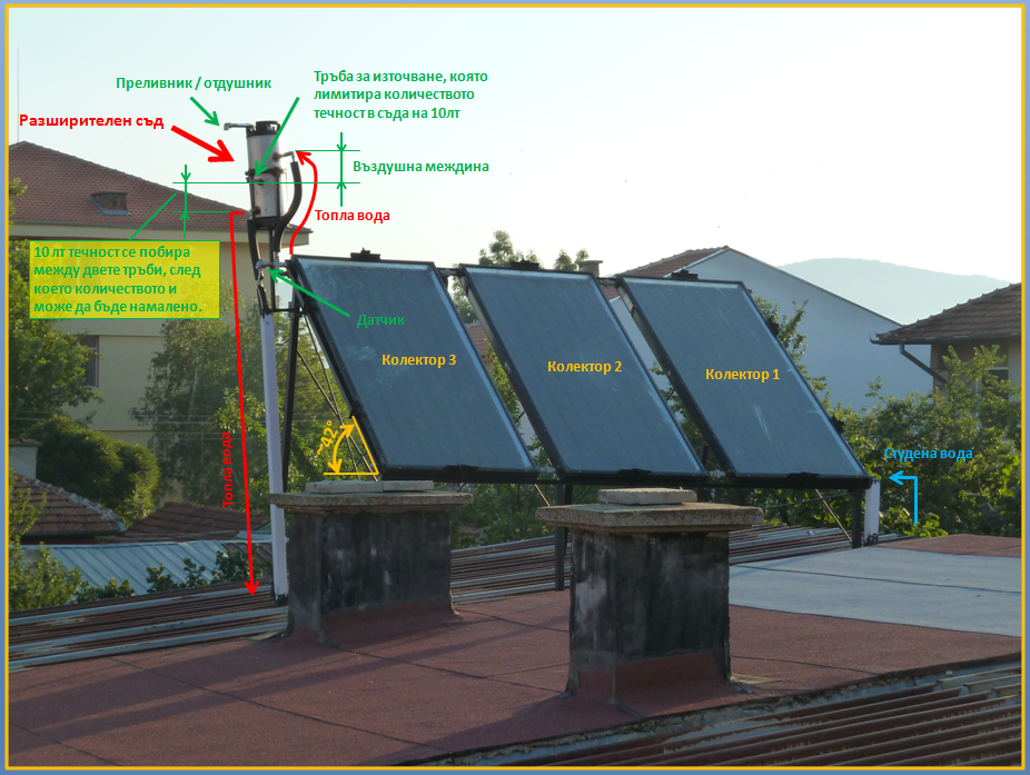 Хм, интересно, няма никакъв проблем съда да е под нивото на колекторите при мен, ще почета пък ще видим...