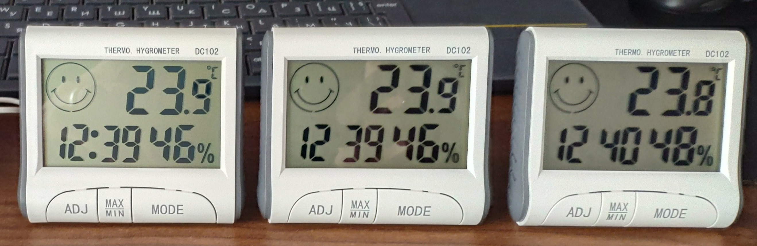 Десният е с минута напред и явно предвижда изменението в стайния микроклимат.