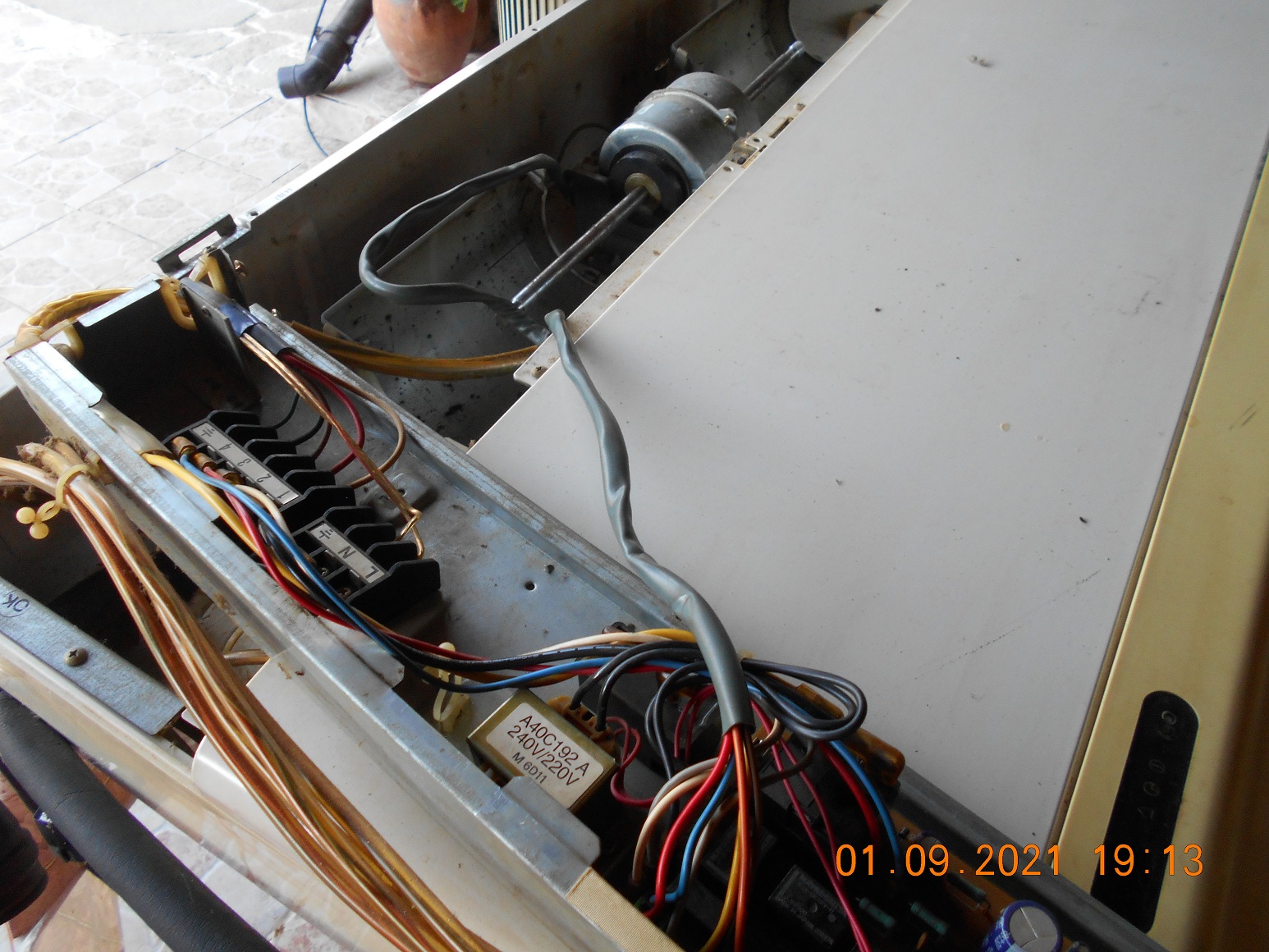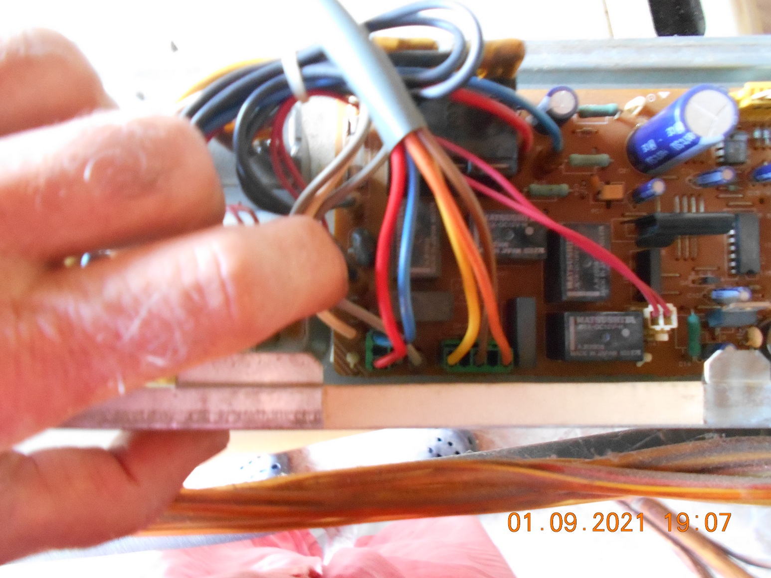 DSCN1315.JPG Кабелите към вентилатора: малка букса - червен и син; голяма букса - жълт, оранжев, кафяв.