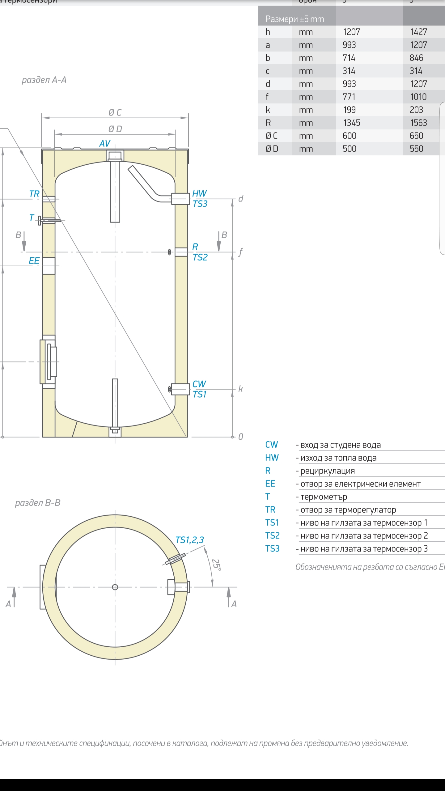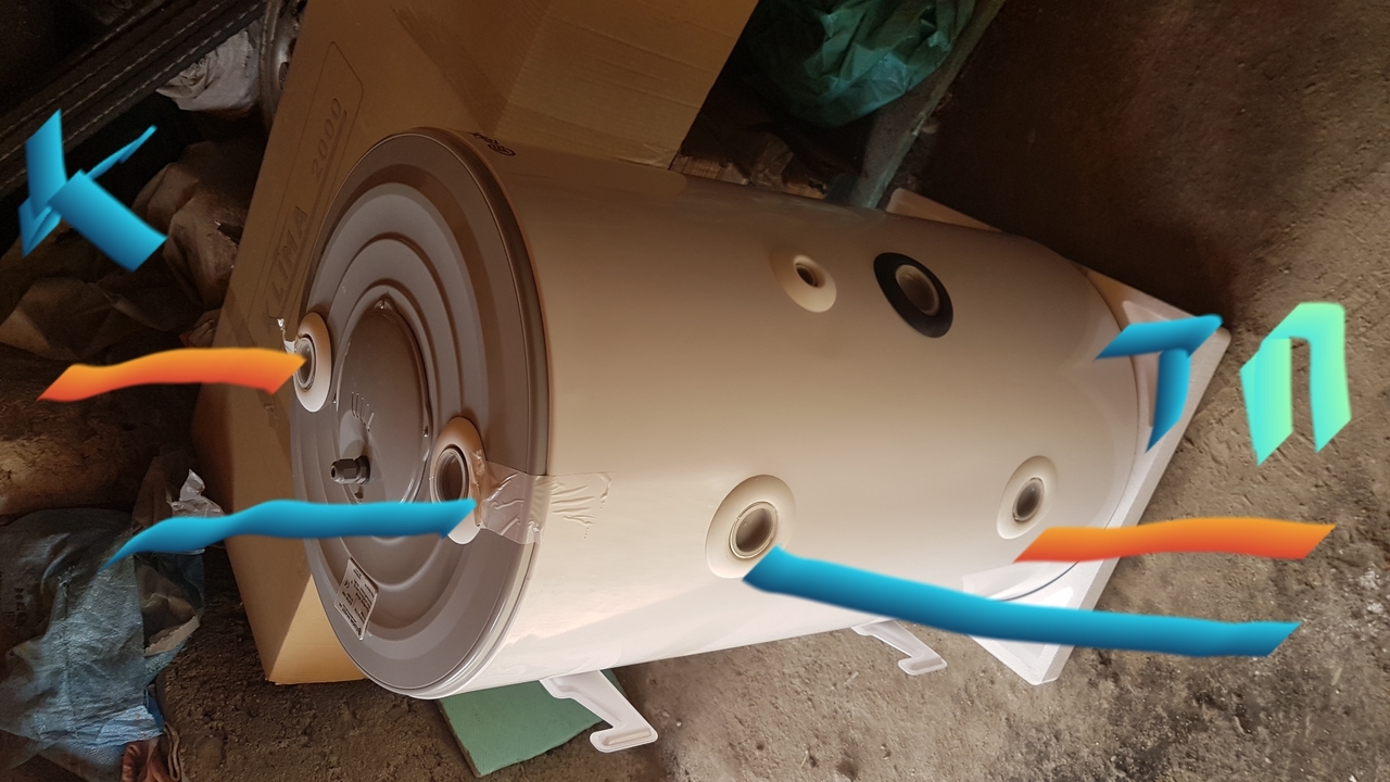 Буферчето пристигна. В крайна сметка предпочетох неръждавейката, въпреки по-лошата изолация. Мисля да го монтирам хоризонтално, понеже мястото не отговаря за вертикален монтаж. Правилно ли съм обозначил връзките на снимката? Вляво към колекторите, а вдясно към термопомпата. Циркулационните помпи ще са на топлата вода към колекторите и на студената към термопомпата.