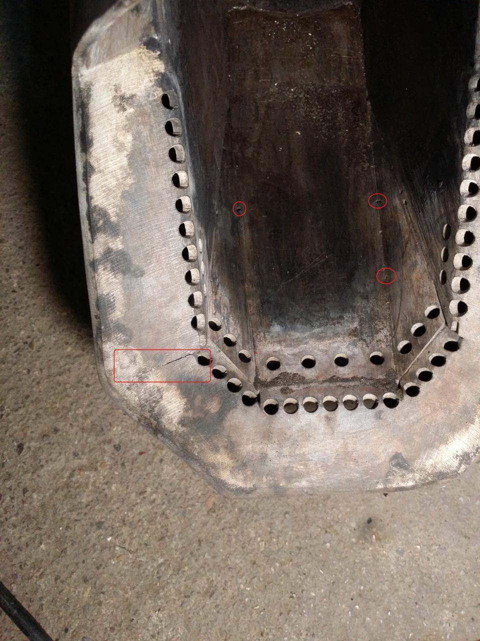 Коментирали сме го - това не е пукнатина в истинския смисъл на думата (че се е спукал корпусът от някакво напрежение да речем). Това е технологична фуга при сглобяването на 2 части на горивната камера, там е имало заваръчен шев, но после при шлайфането на шева някой се е увлякъл и го е запилил повече. С нищо тази фуга не пречи на работата. Ако много те дразни може да мислите нещо с инсталатора след края на сезона - или да се прати в завода за нов шев, или на място да идва заварчик, или да си остане тъй.