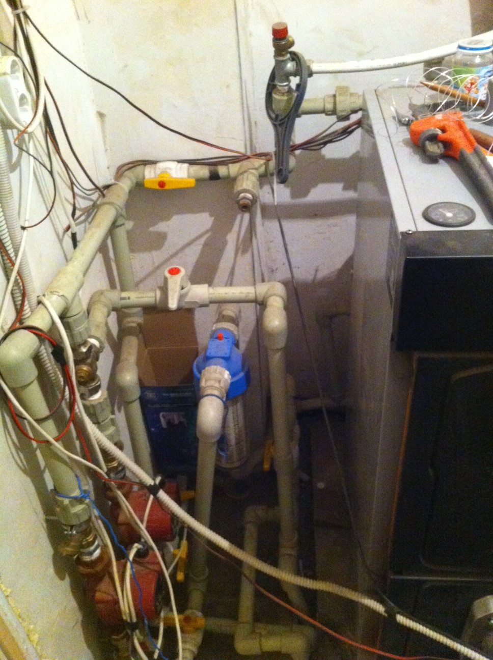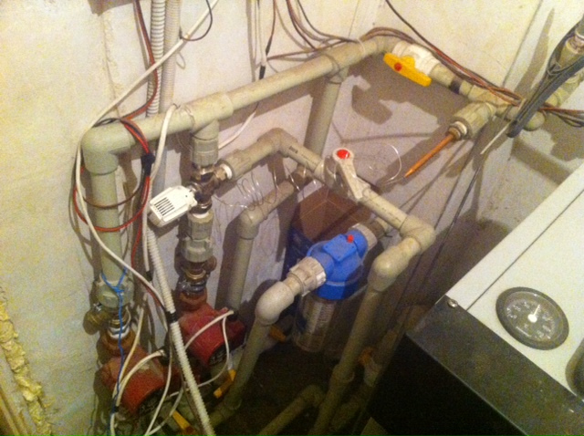 Точно си обяснил как да си го сложи на котела. Имам само 1 забележа, да маха тези намаления (преходи) в диаметъра. Най-малките диаметри да са на 3-пътния вентил, а след него веднага да минава на поне 1”.