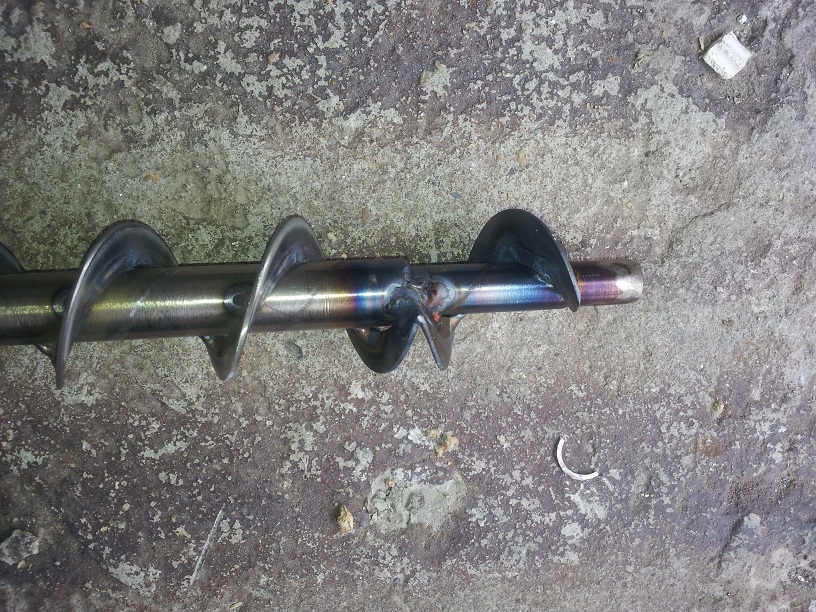 Захранващата ми тръба не е пълна постоянно с пелети....Вътрешния шнек предвижва само дозата ...Останалата част от шнека е чиста.А като стана въпрос за шнека...Ето и снимка на него..Видоизменил съм го с обратна спирала в предния край..