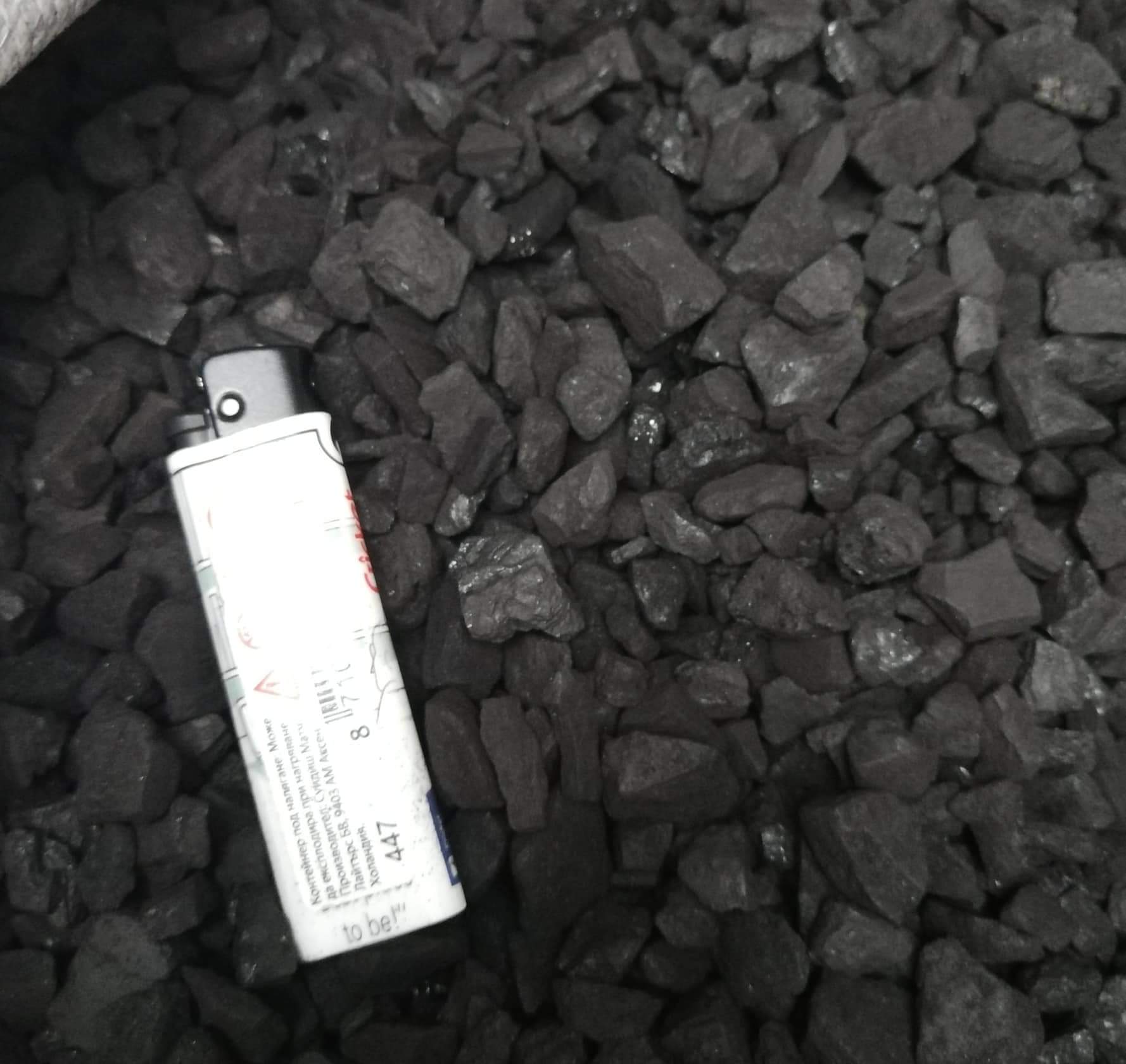 Въглищата са си най-обикновен Руски въглища от Топливо, просто са ситна фракция, ситна - ситна - 60 процента пепел е, толкоз е ситна. Затова ги пресявам, и съм сигурен, че няма топчета из тях.