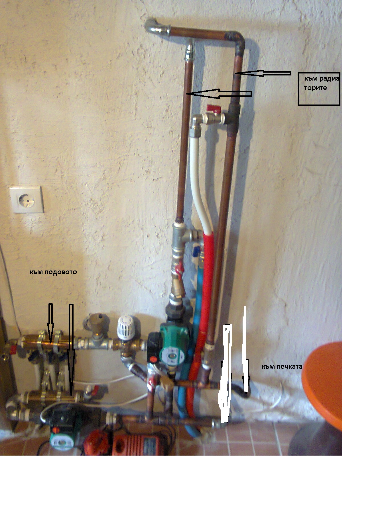 първо водата минава през радиаторния кръг и бойлера, в последствие през подовото.