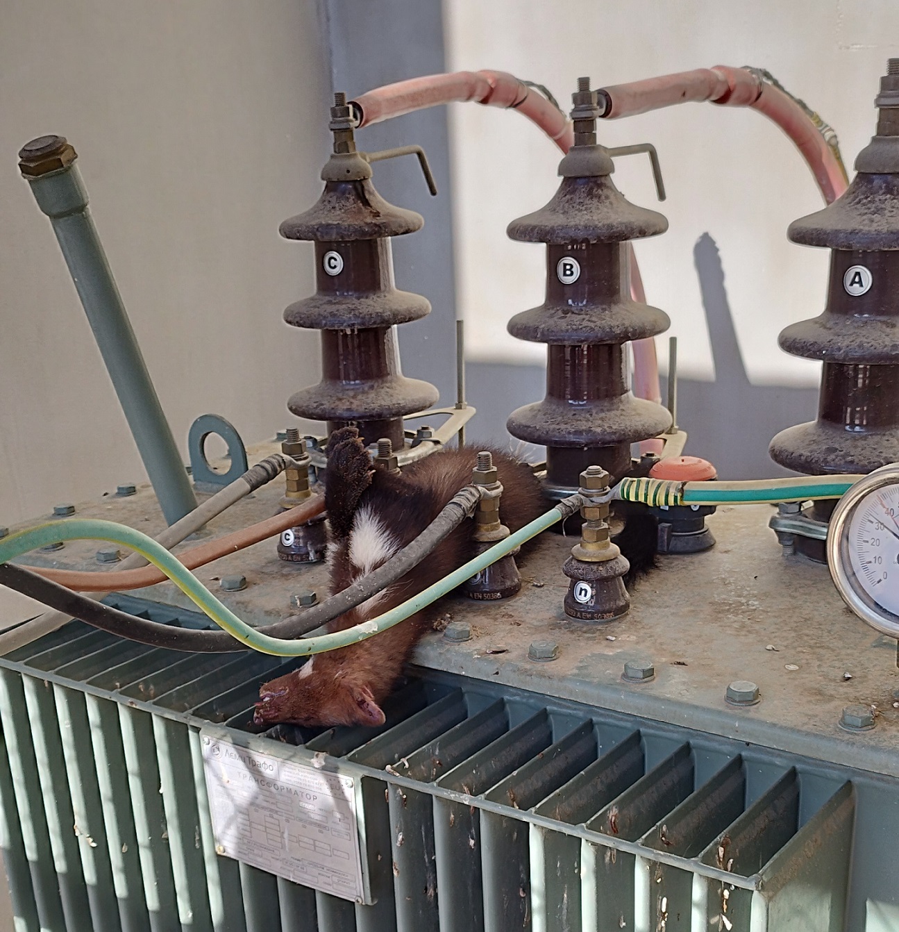 Гризачът е успял да направи дъга по диагонал - от фаза С на 20kV към фаза В на ниската страна 0,4кV
