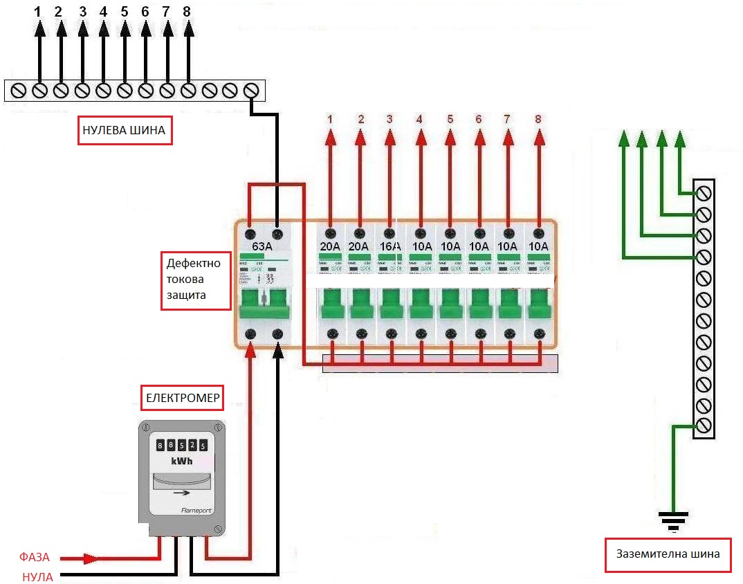 Като огледах по обстойно забелязах, че в нулевата шина е забодена директно нулата от електромера и после са правили някакви мосчета и нз какви още тъпотии, но не ми се занимаваше да рова повече