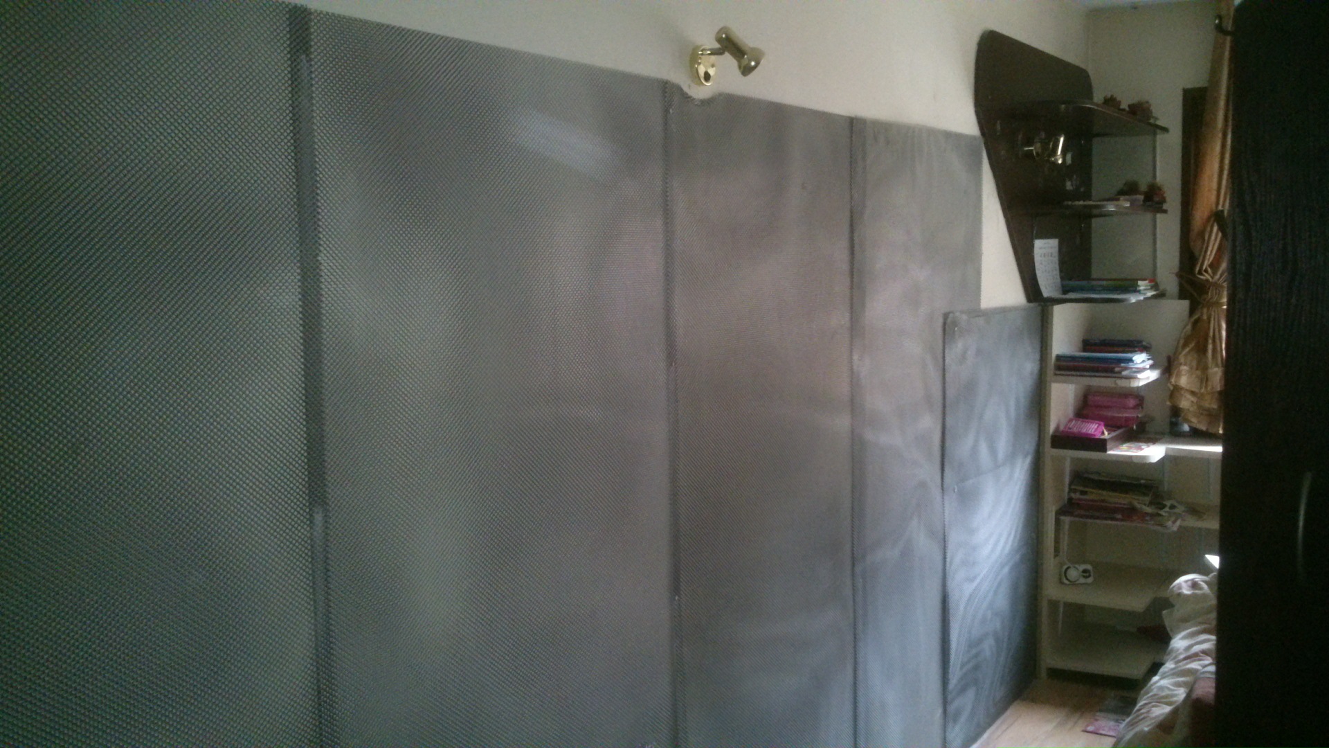 Виждал съм нещо подобно - стена и таван, плътно покрити с фолио. По думите на момчето, което е в стаята, след като на съседния вход монтирали клетка на мобилен оператор, започнала да го боли главата. След опаковането, проблемите изчезнали. Може и да е вярно, но все пак ...