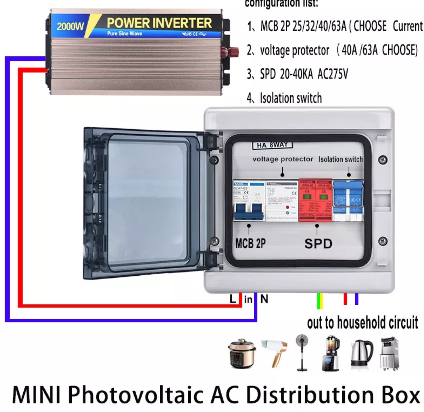 Ум шалтерът на Hager не е подходящ за превключване под товар. Затова на първа и втора позиция се поставя допълнителни предпазители 40А. В АС таблото на изхода на инвертора също има предпазител.