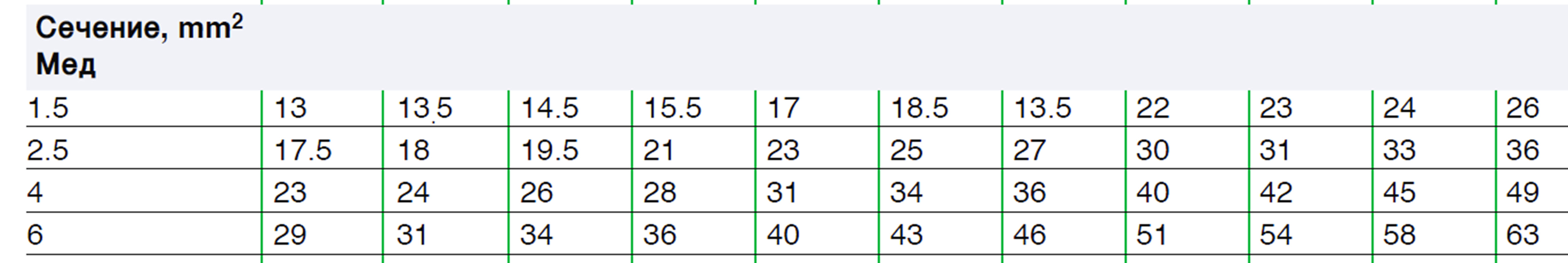 кабел сечение 2.5мм2---(13.5-20)А---(3.1-4.6)kW