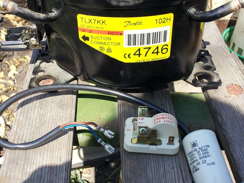 За nakatasan, имам изгорял Danfoss компресор от фризер, мога да снимам и да покажа. Пусковото му реле е с термосъпротивление вместо контакт за пусковата. Има и кондензатор, но само филтриращ.