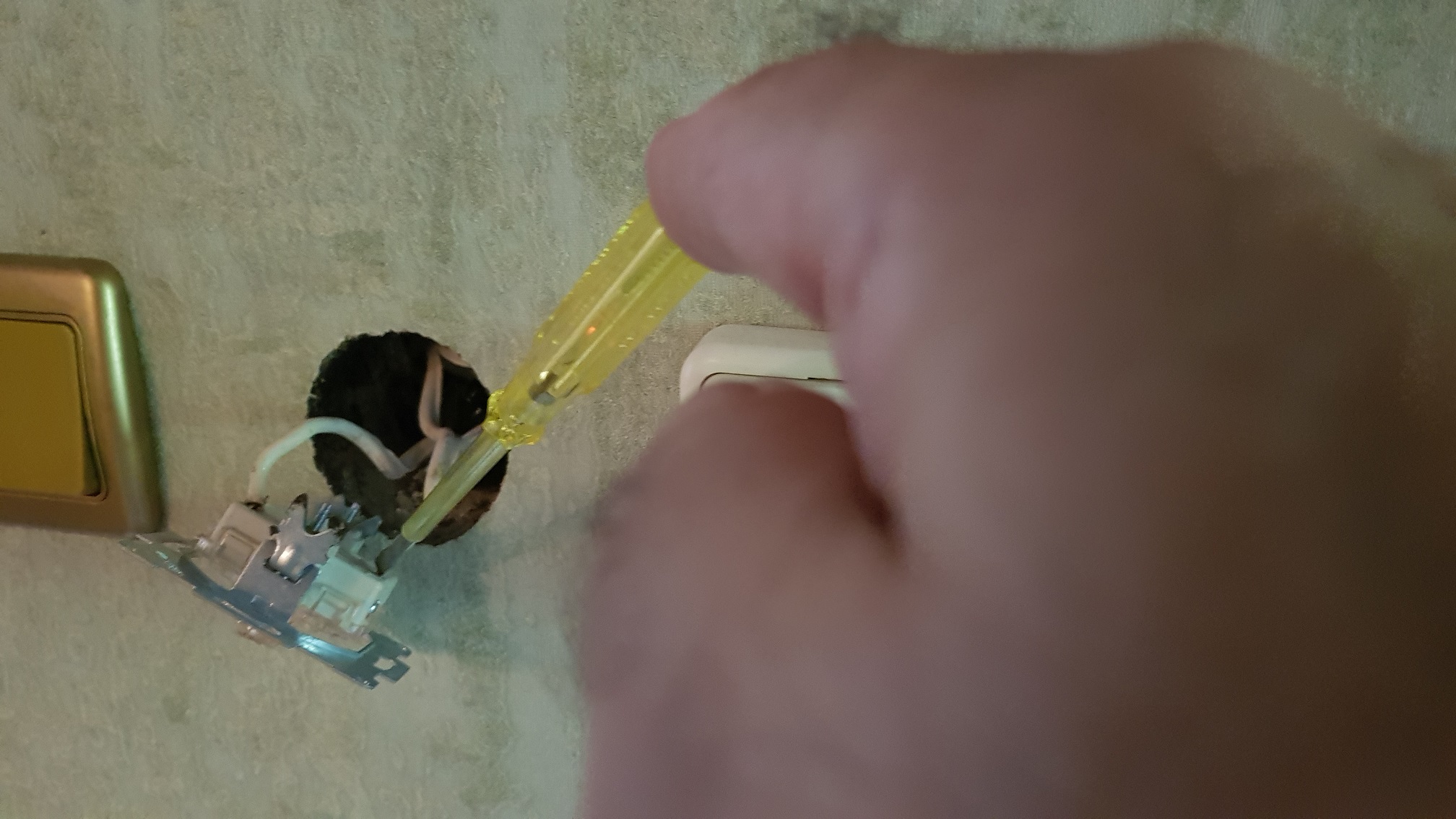 На едното положение на ключа има фаза на едната клема.Би трябвало като го превключа да даде фаза и на другата клема.Обаче фазата изчезва и от двете клеми!