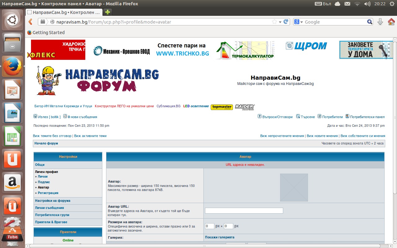 Здравейте,и аз да попитам защо немога да си кача аватарчето-пише био невалиден адрес ,,120х108 размер:?
