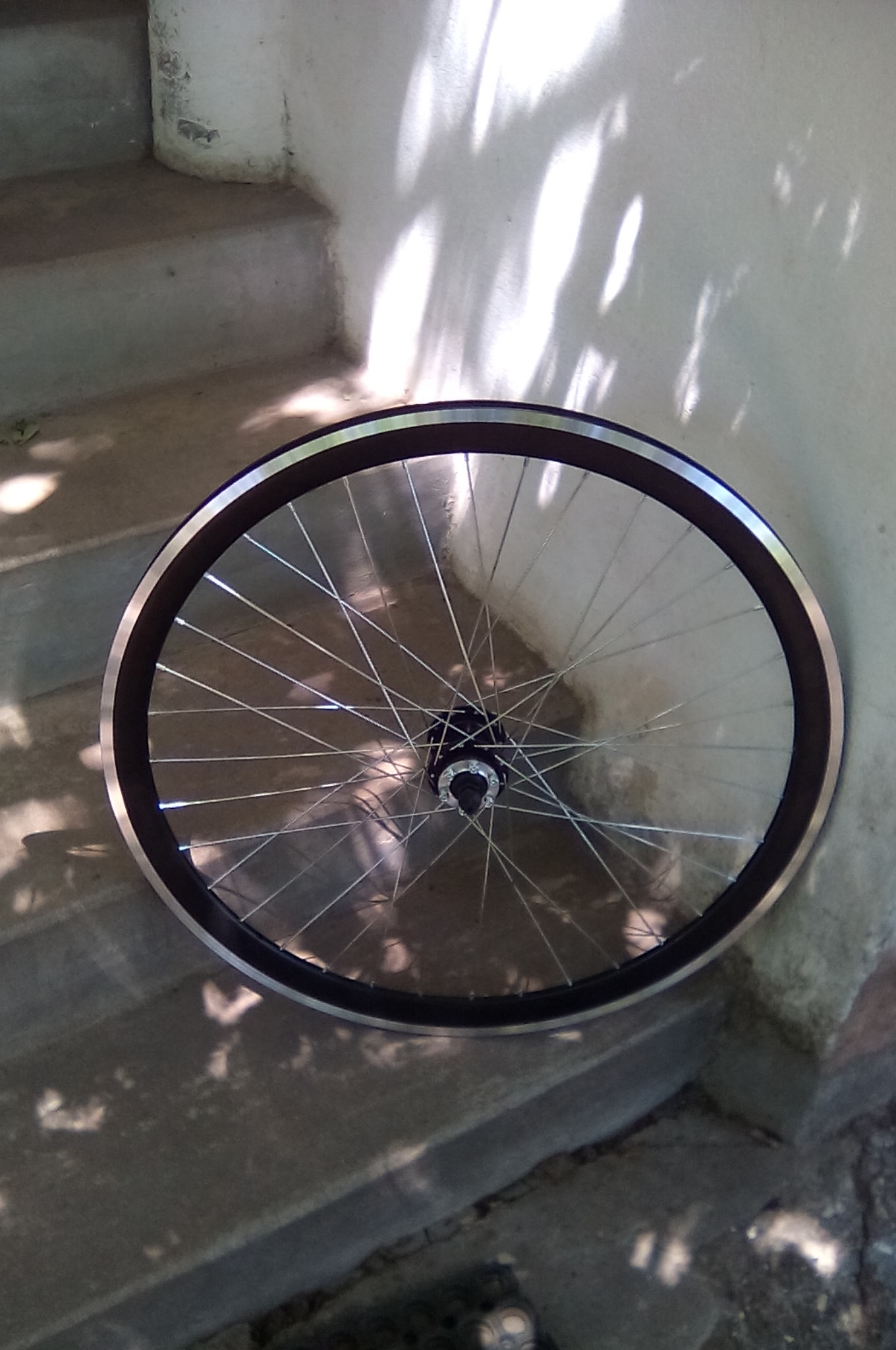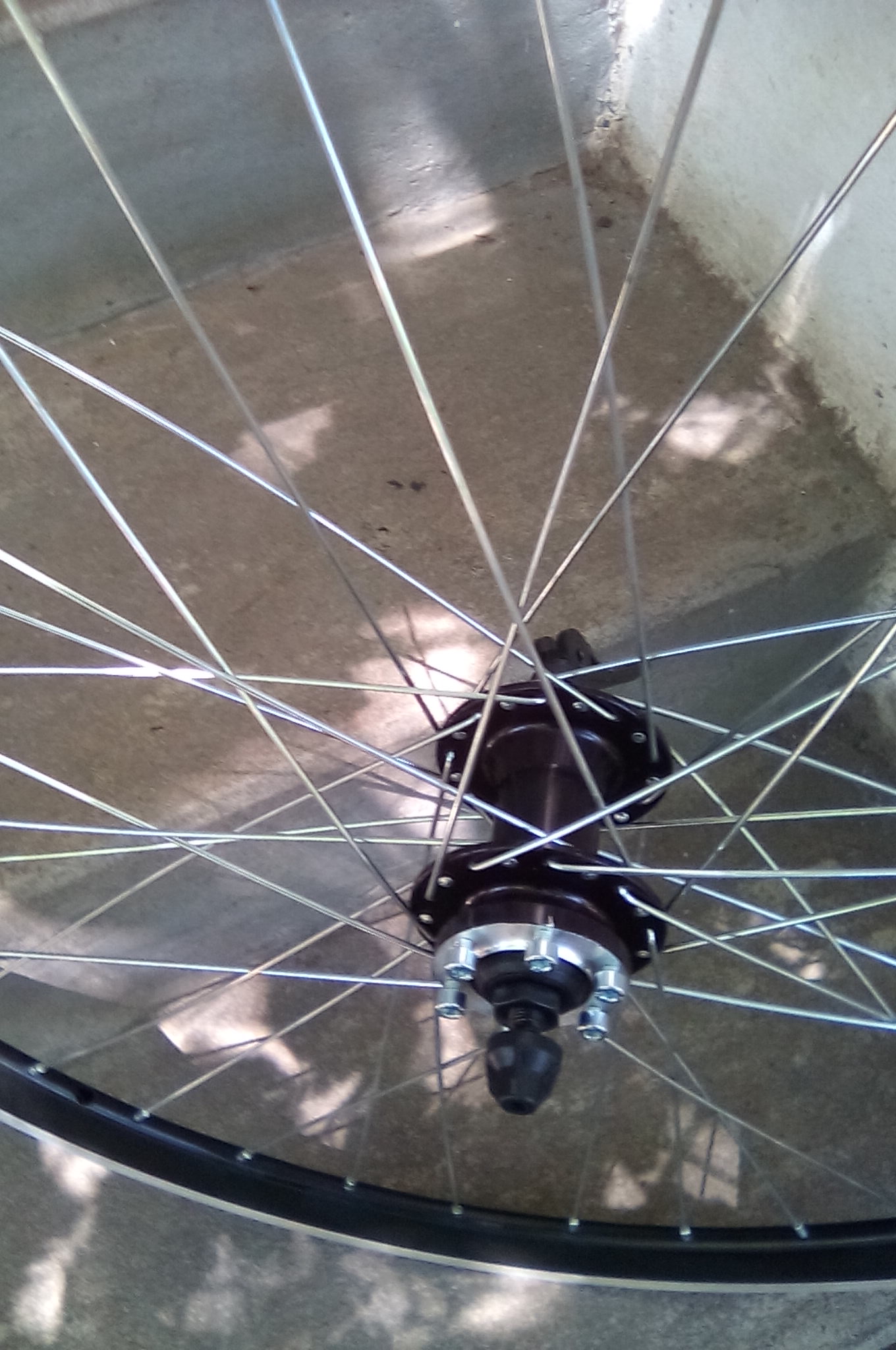 Днес наплетох тази предна шосейна капла 28" с главина Diadem за дискова спирачка.Също и задна капла 28" на шлици за дискова спирачка.Обръчите(шините)са тристенни.Утре предстои центроване.Цена за наплитане и центроване 4лв на бройка.Плетка-cross 4