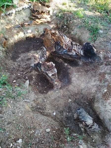 Да.Точно в средата на оградата с комшията е.10 години стои разградено.Трябва да циментирам оградата и в нея да сложа колоните за асмалъка,който напъна,млади асми са на 6-7 години.Даже съм и закъснял.Багер не мога да извикам,защото при ваденето ще изкорени половината лози на лозето на комшията.