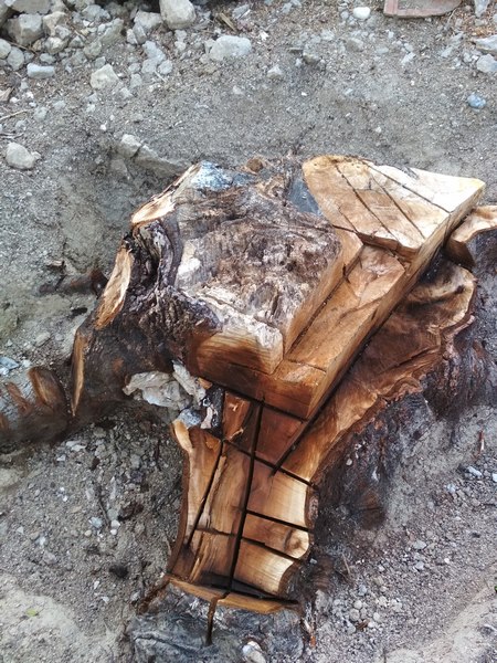 Стар дънер от круша свалих с прясно наточена верига за меко. Машина MS 150, със шина 25см!!!