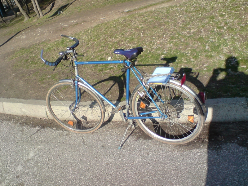 Колелото е френско Motobecane на близо 28 години. Произведено е 85-6 година. При мен е от 11години, взех го 2002 година-втора употреба и досега съм минал близо 7000км, без нито един проблем. Всичко по колелото е оригинално Weinmann и Sachs Huret, главините са френски. С 10 скорости е.