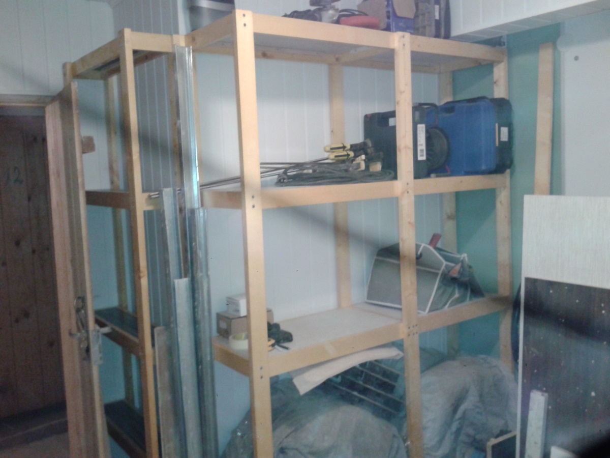 Ще си наредя релсите по стените, ще си сложа стойки, а за рафтове ще ползвам остатъци от плоскости пдч.