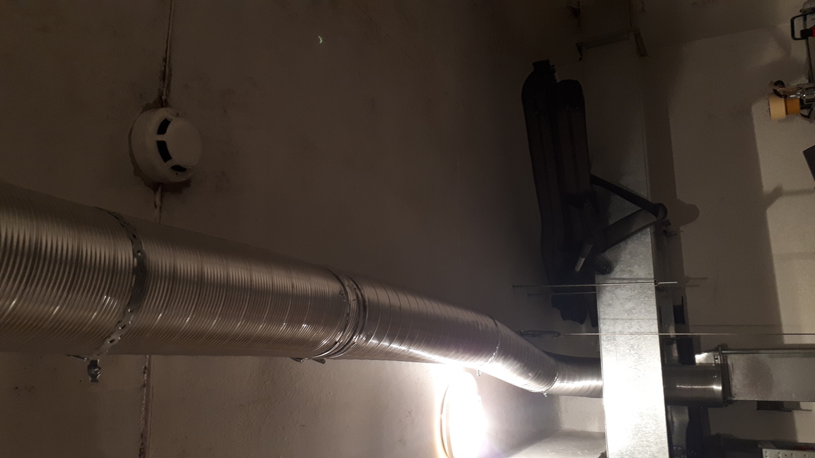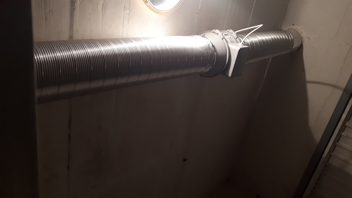 Започнах така както е на снимките по-долу. Сега поне имам някаква вентилация на гаража. Към момента е към общите помещения. В моят гараж не влиза никакъв въздух през общата вентилация и това би трябвало да компенсира.