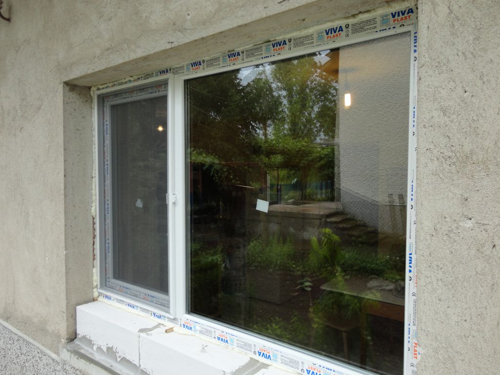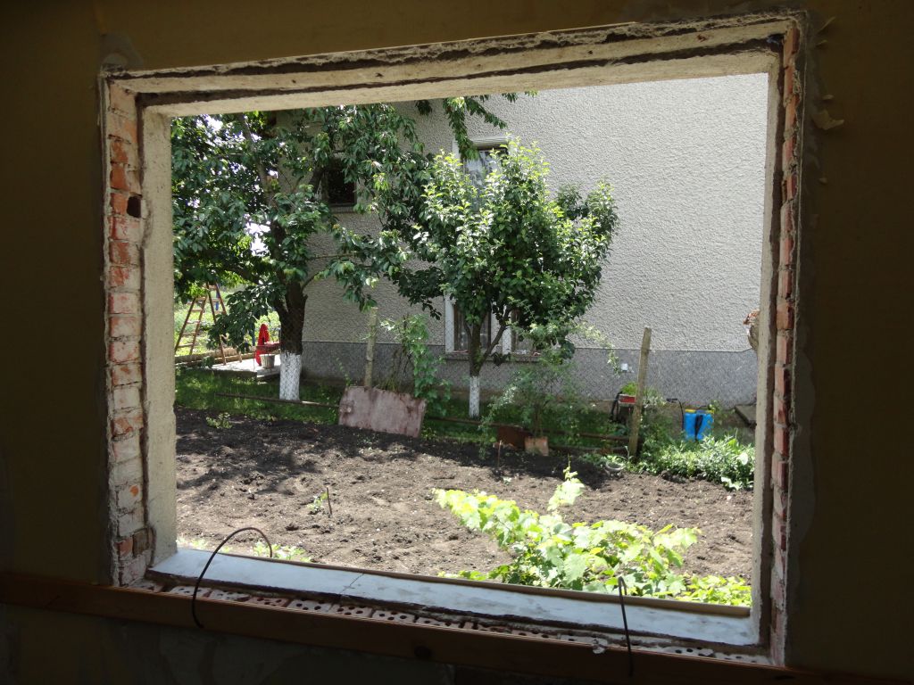 Понапреднах малко с вилата.Посъбрах някой лев и смених малко дограма.Това е прозореца.Свалих стария джам, излях изравнителен праг, после залепих итонг, за да докарам поръчения размер.После сложиха джама.