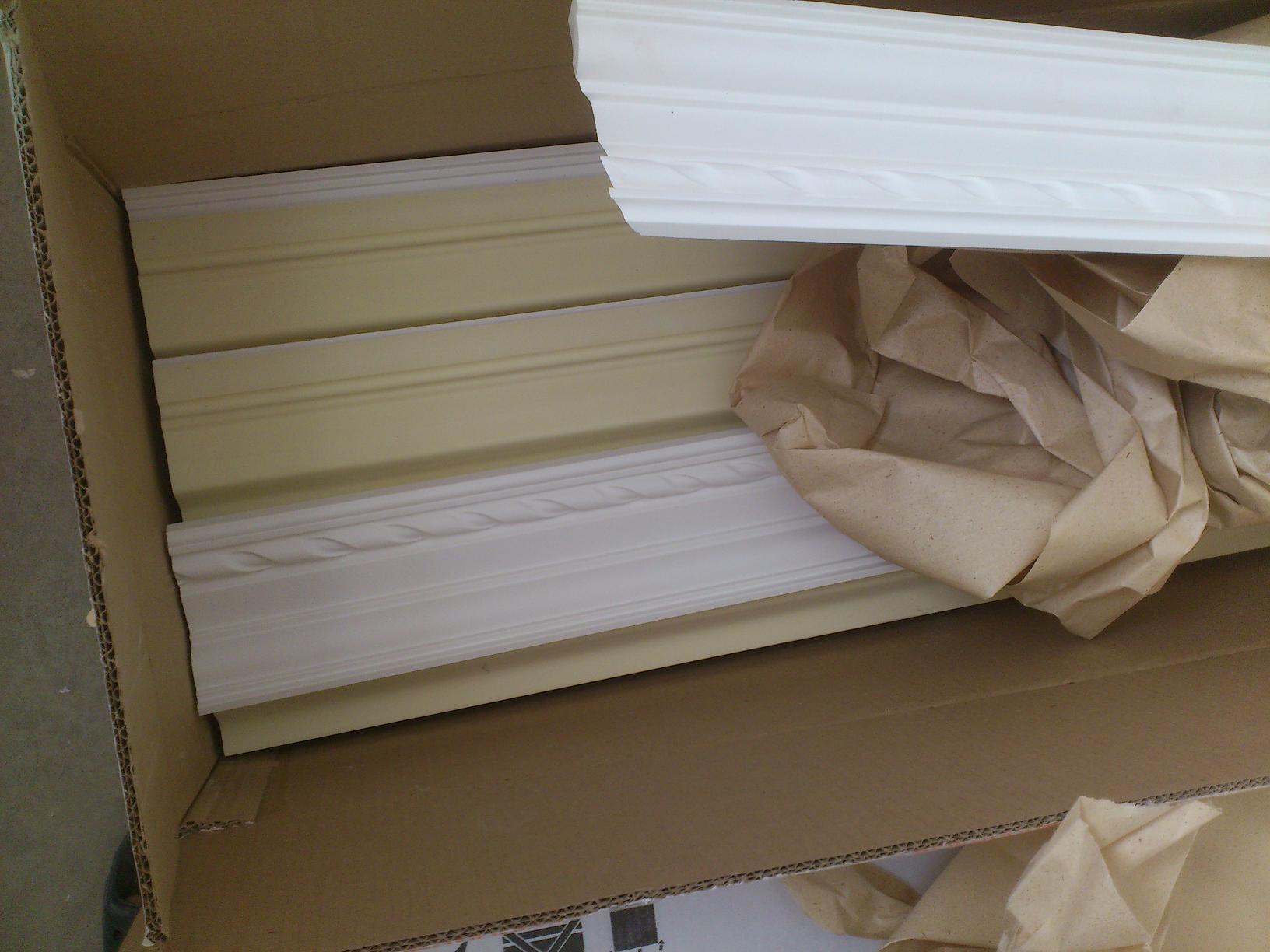 Вчера ми домъкнаха плочки за малката баня и корнизи за целия апартамент, даже пробвах един от тях, как се реже :-D