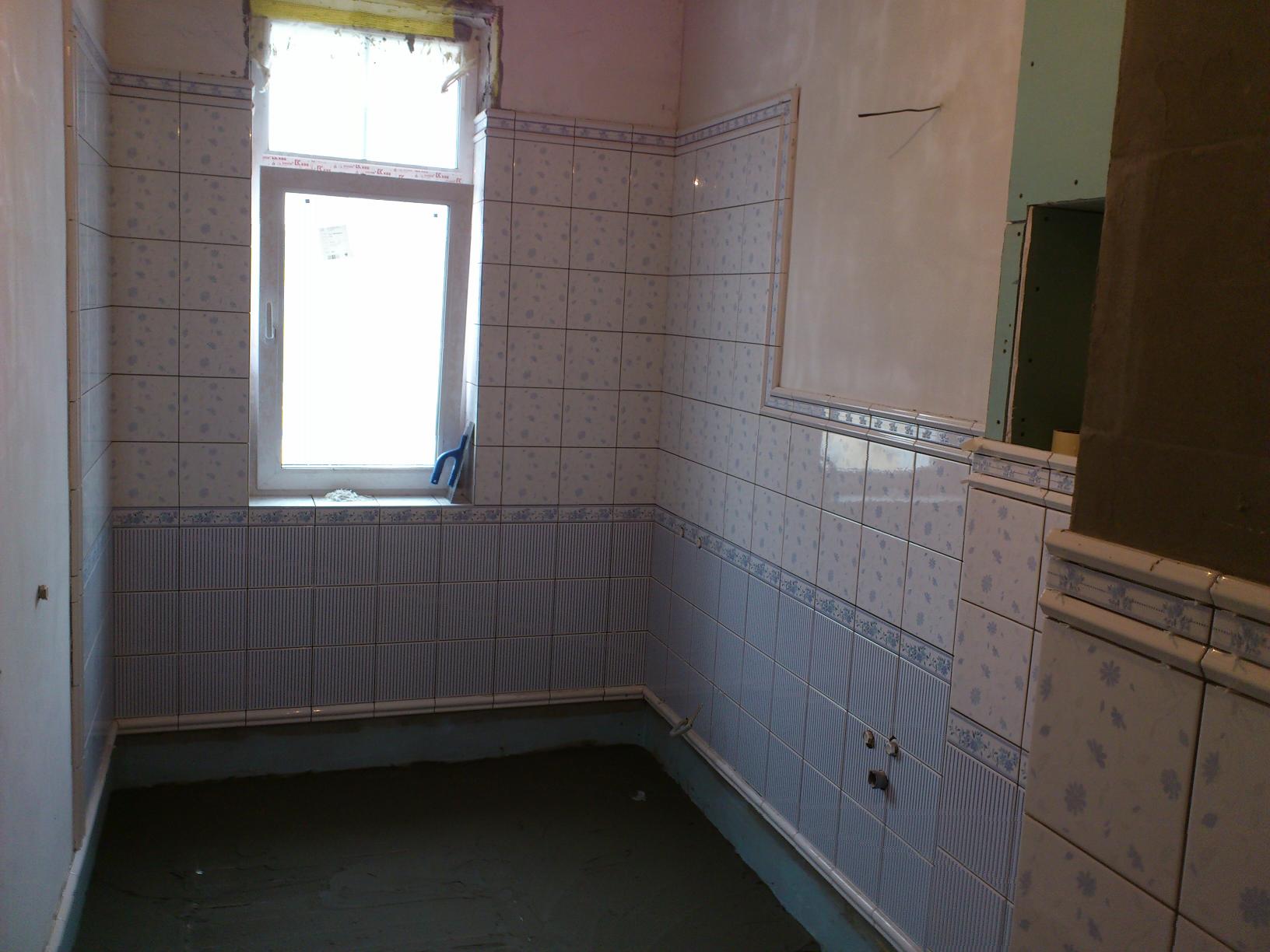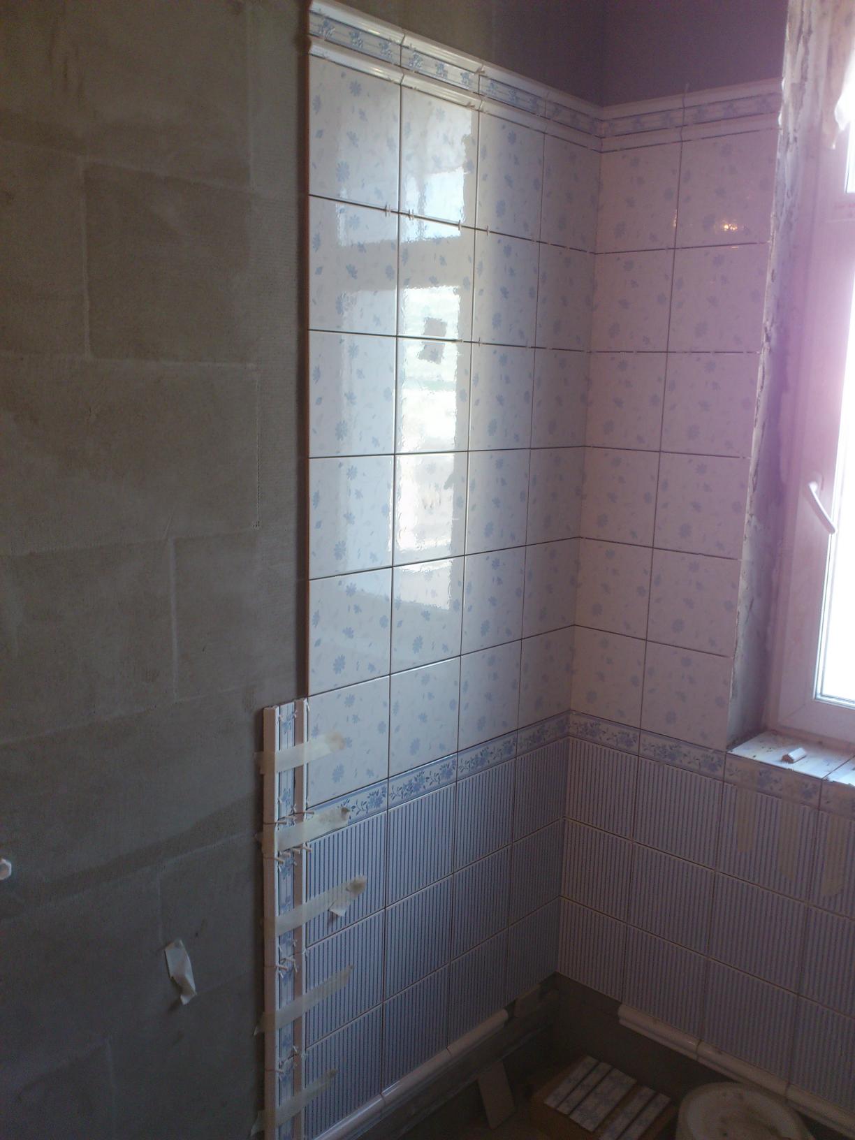 Бъзикач :-D В 99% баните ги почвам със втория ред на фаянса и с първия застъпвам теракота. Реално в Русия, а и в Европа не правят наклони със сифони в баните, а прави подове. И тогава първо се прави пода и после стените.
