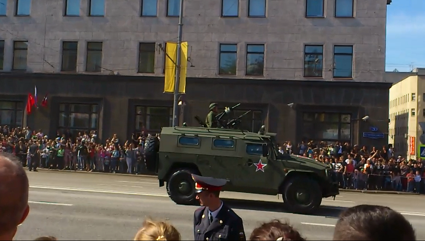 И по този повод обявихме почивка от работа, и понеже Червения площад е за богоизбрани в този ден, отидохме на странична улица да погледаме парада на военна техника. Една детска мечта се изпълни :-D