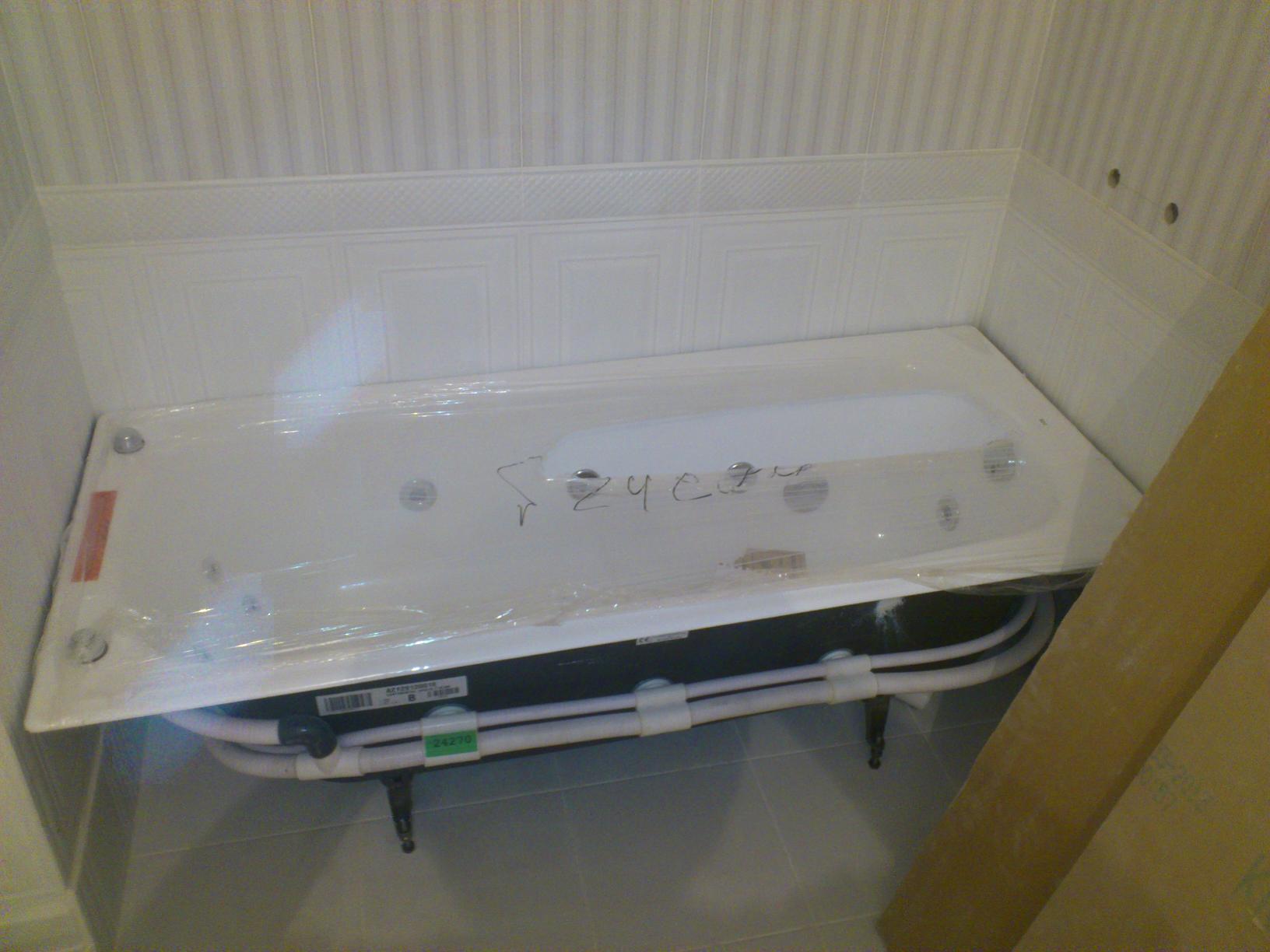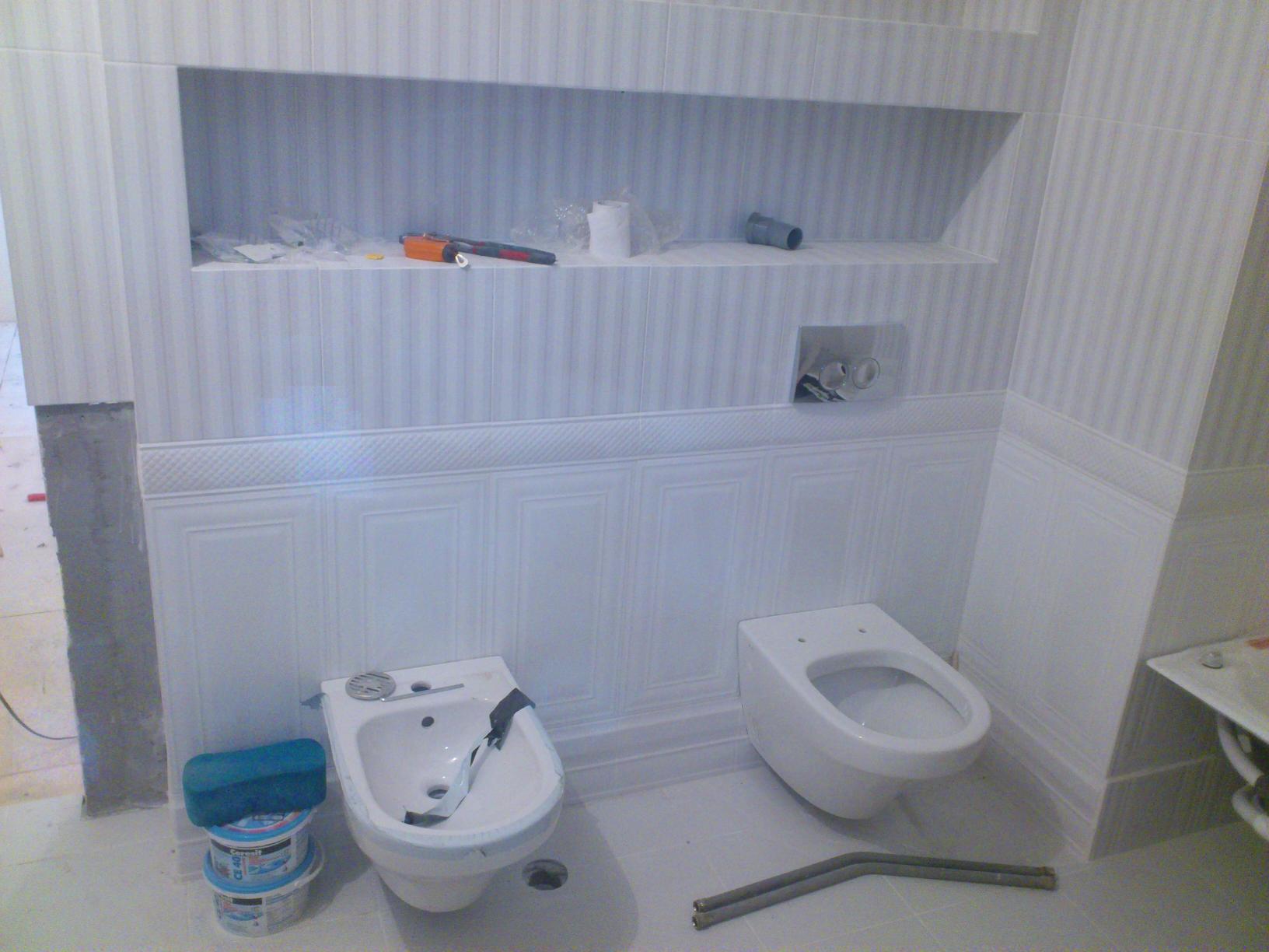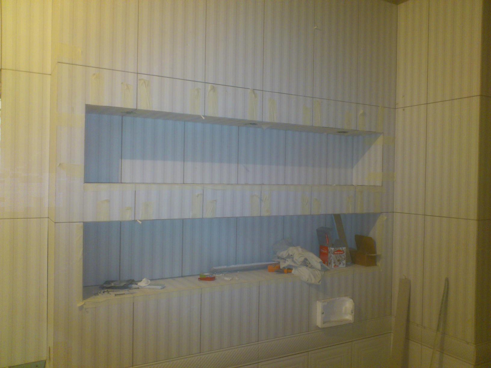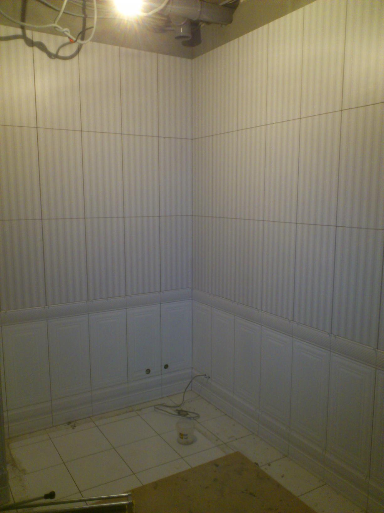 Банята почти преключена. Най-гадното съм направил и остана само "екрана" за ваната, която идва утре и вече чака само фугиране -
