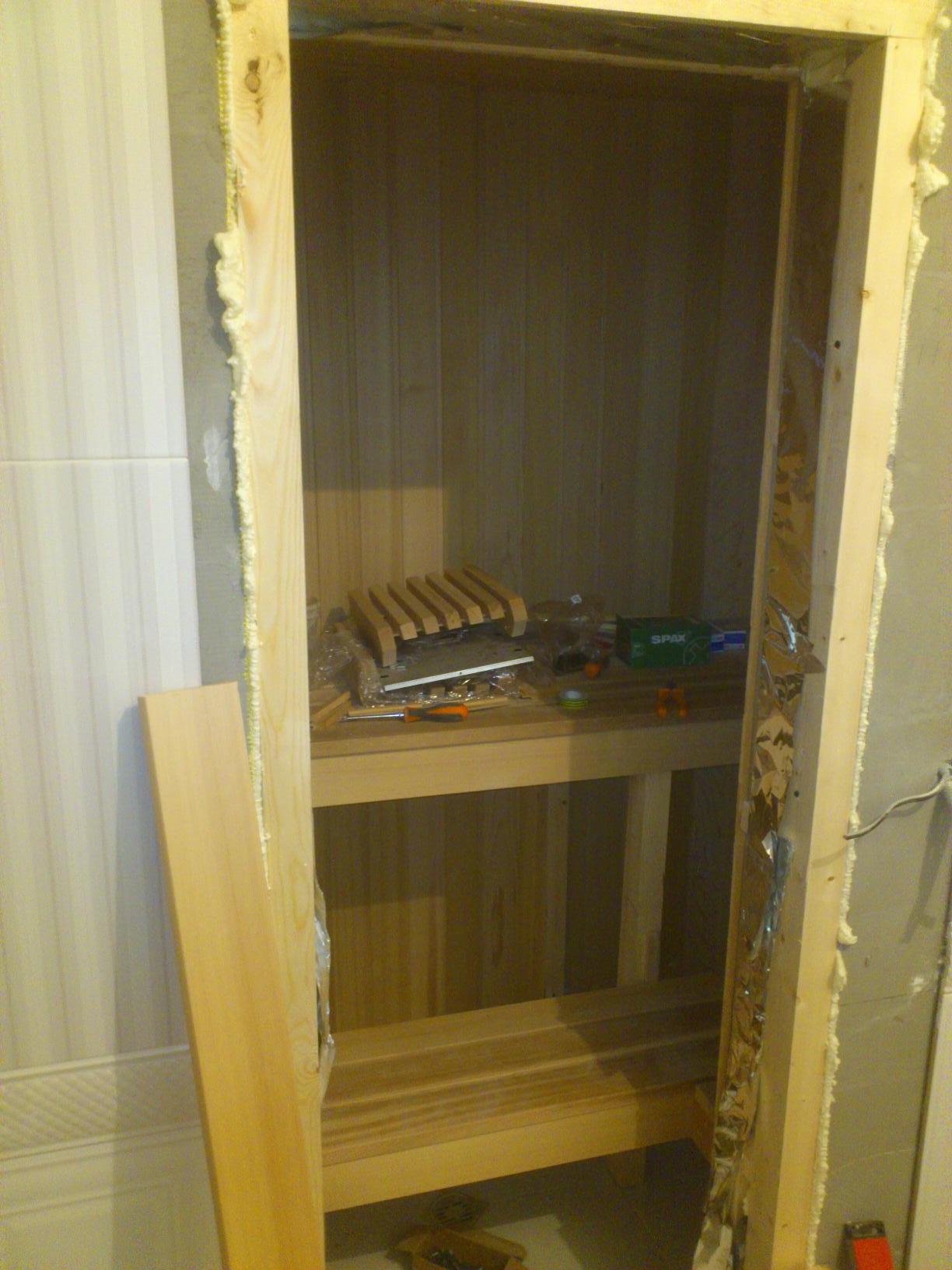 Нямам вяра на итонга и пуснах стойки за бойлера в перално, закачени за тавана, не ги вкопах, щото не знам точните размери на бойлера.
