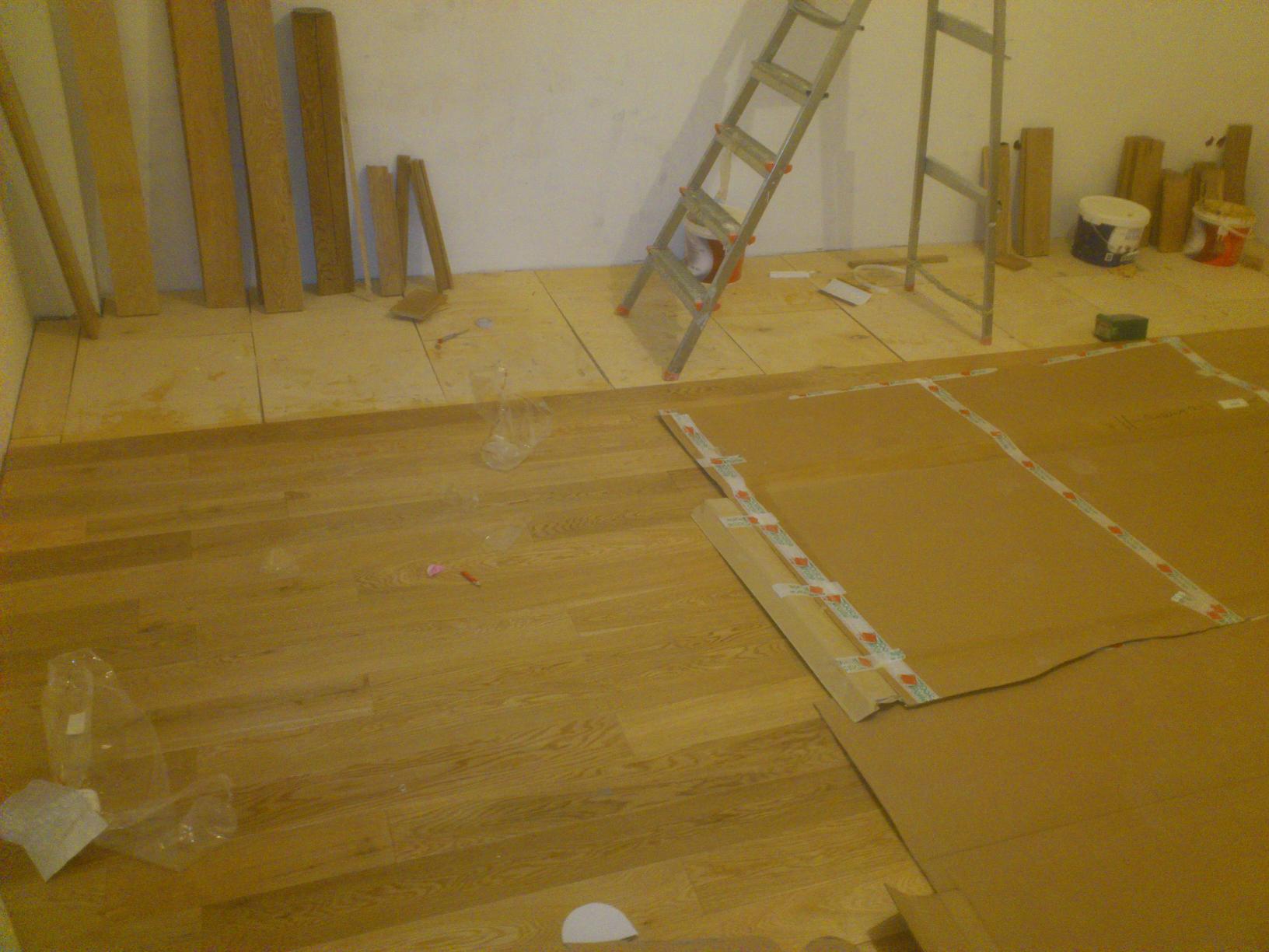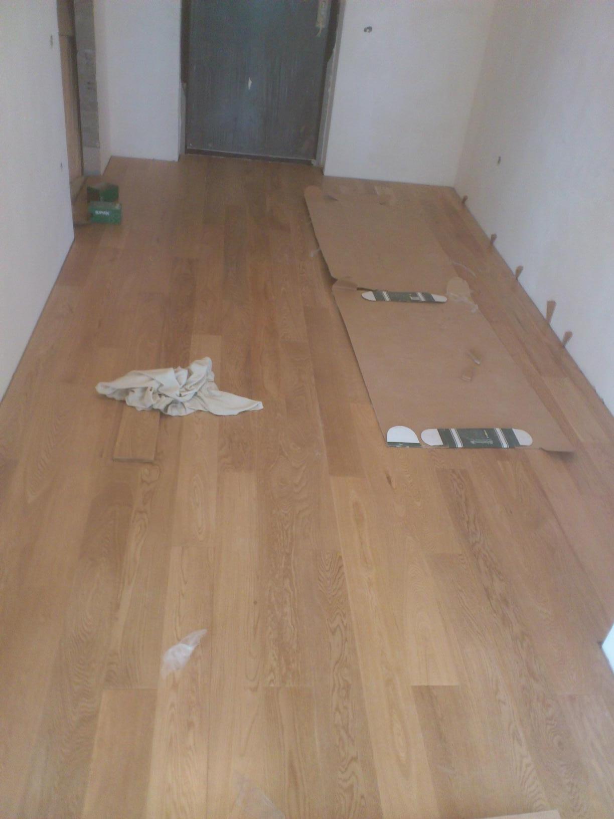 За първи път слагам естествен паркет, за големия ми късмет нямаше отклонения в размерите по широчината.