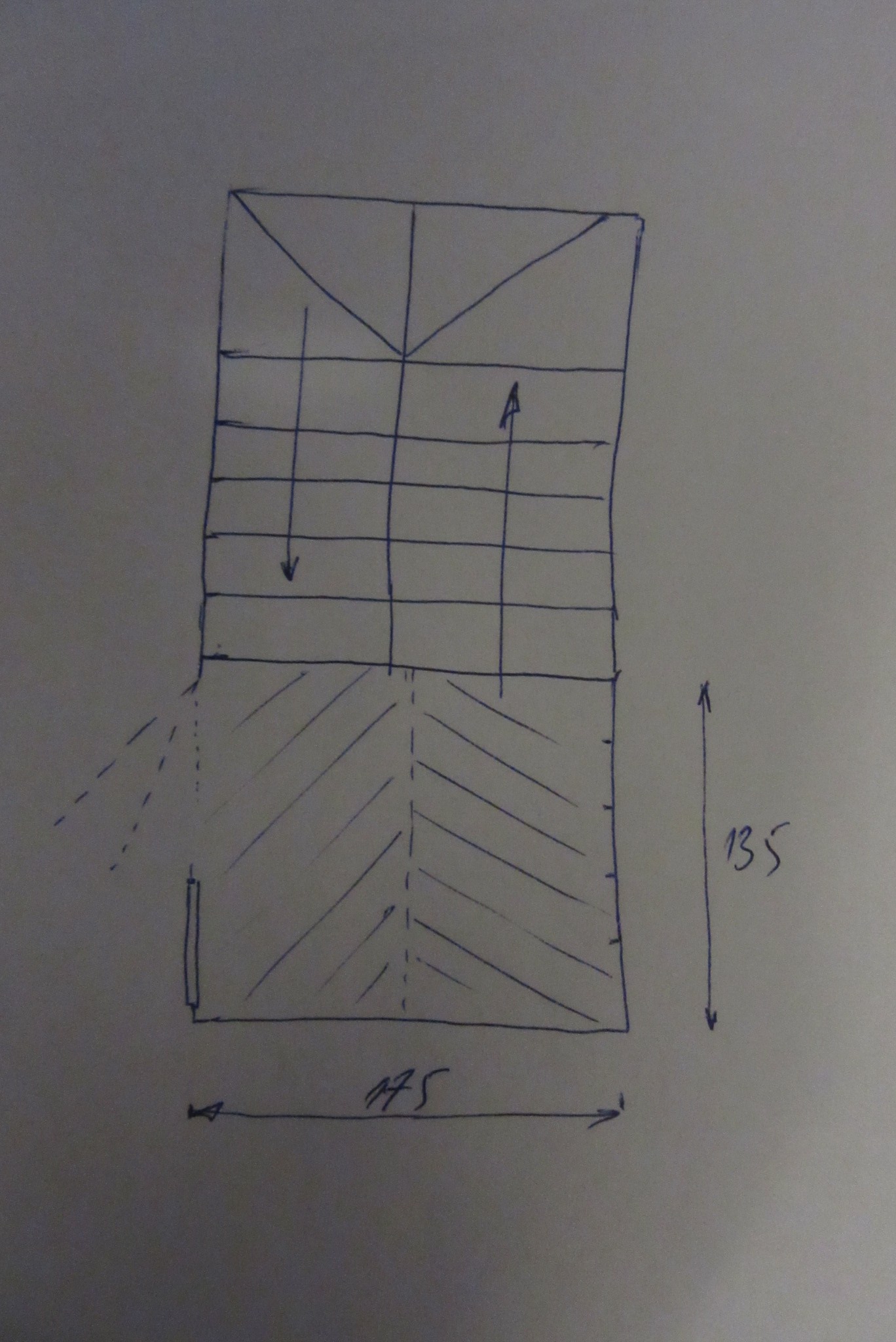 Вчера ми хрумна и вариант за оформяне маркиран в червено. Да следват челото, което е под тях без аванс от 2 см. Като цяло има ли правило, което да се следва. Да кажем при завой под 180 градуса завършващите участъци да са успоредни на стъпалото, на челото или нещо друго...