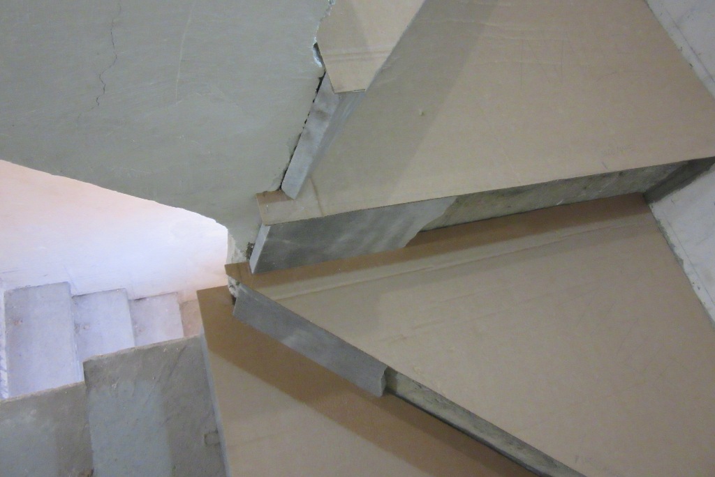 - При наклонено чело, то контактната повърхност със стъпалото не е равнина, а ръб. Ще се получи фуга, която е необходимо да се попълни естетически. Но при положение, че контакта на чело със стъпало е ръб, а не повърхнина, то увеличавали се вероятността да се получи отчупване на стъпалото в участъка с надстърчането. Твърдо аз ще заложа на надстърчане от 15мм.