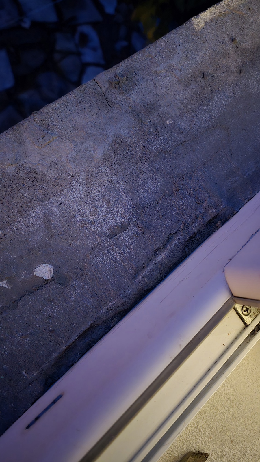 Сменихме дограмата на Стара къща преди 2 години. Не живеем в нея постоянно и не бяхме там като обръщаха прозорците. Сега гледам, калпава работа са направили. Не навсякъде има Пяна и са мацнали отгоре с цимент. Сега фугата между дограмата и стария перваз (там където преди е стоял стария прозпрец) е зейнала след като цимента се е наронил - това е външната страна. Всичката вода отива в стената под перваза и стената е дълбоко влажна.