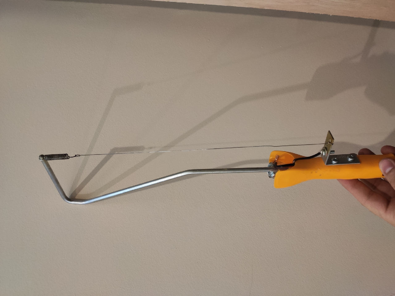 Решението беше собственоръчно направено устройство, състоящо се от летва 1м. , 2 х 25 см шпилки, 4 х гайки тип пеперуда, 2х пружини, кантал 88 см, импулсно захранване 36v 4.8A и регулатор на напрежение. В следващия ми пост ще сложа снимки и на него.