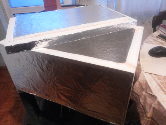 Себестойността ú е около 8-10 лв. Имам лепило за поне още 5 броя., трябваха ми 1,5 листа стиропот и около 8 м домакинско AL фолио.