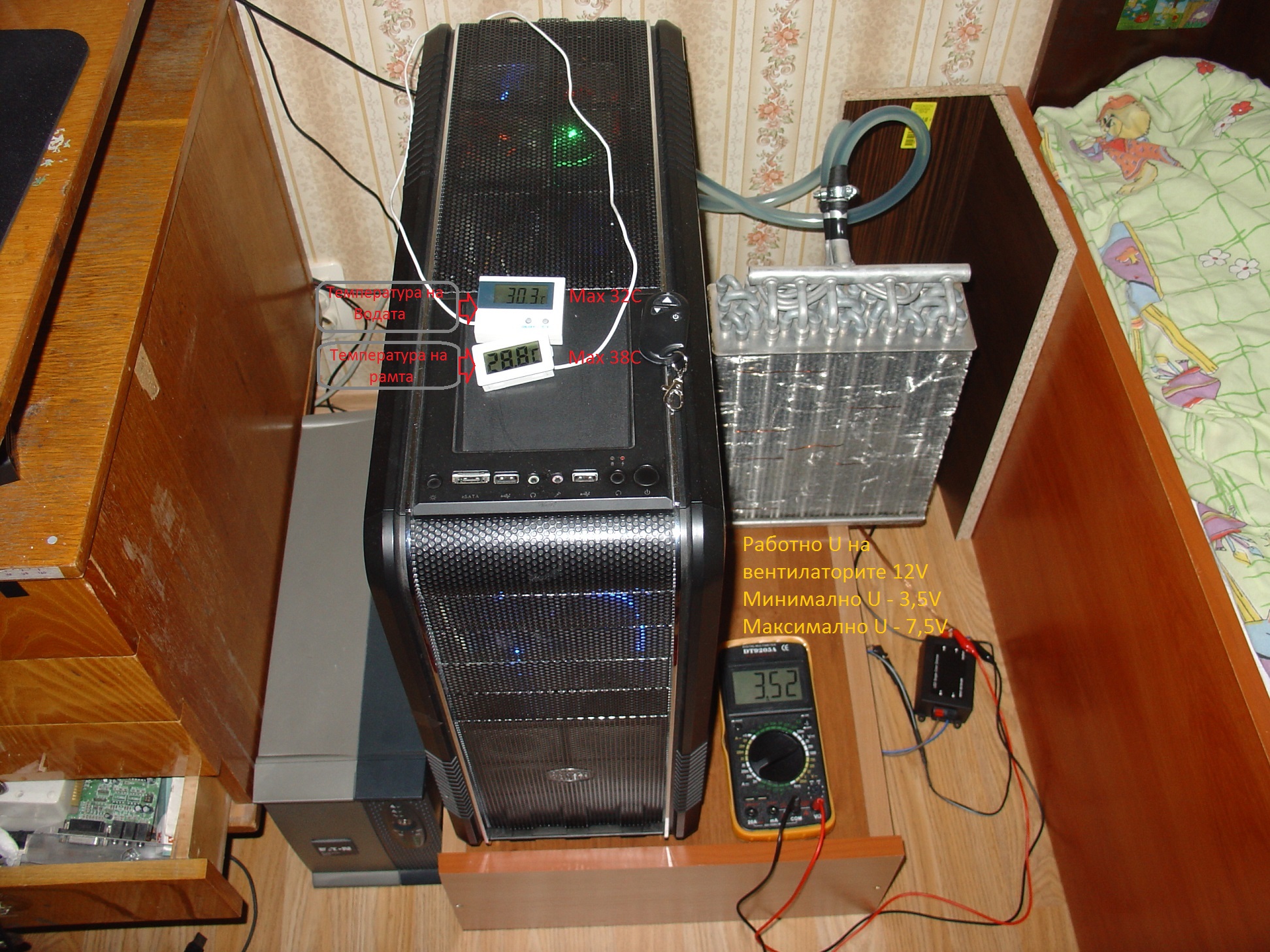 Температурата на водата я меря, като съм пуснал сондата в резервоара отгоре с цифров термометър.
