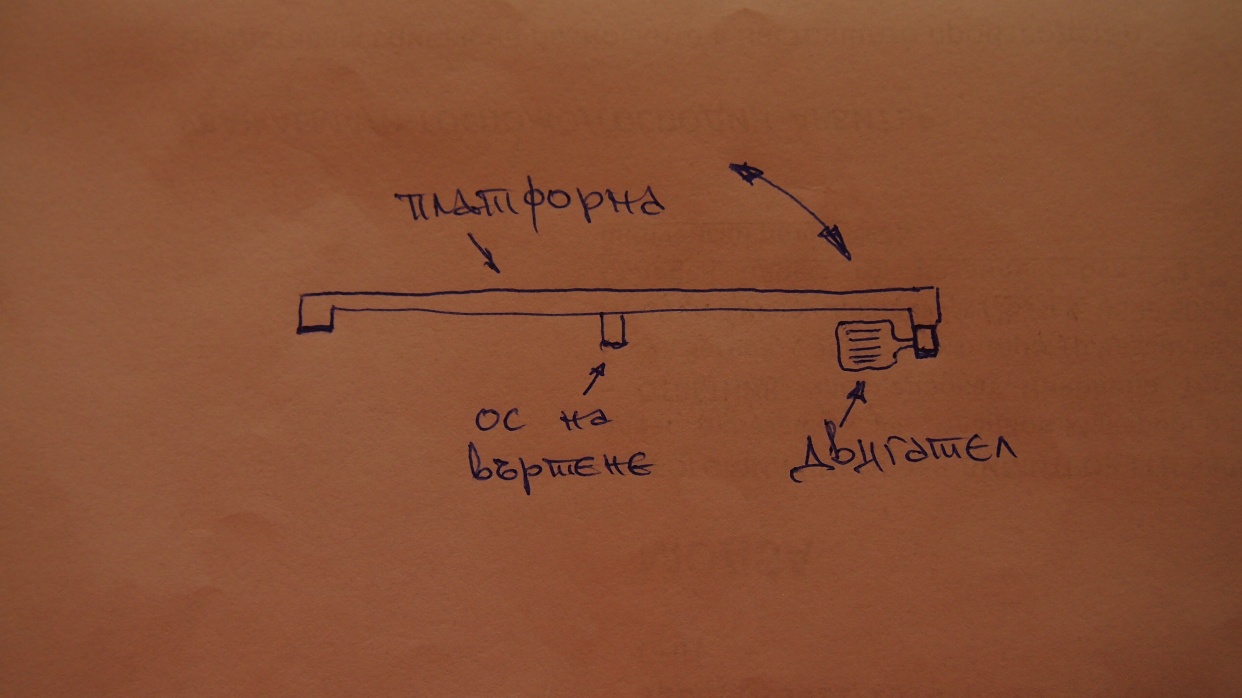 Като шайбата на двигателя опира в периферията на платформата.Виждал ли си люлка на панаирите дето й викат --Гондола и загледал ли си как я задвижват??