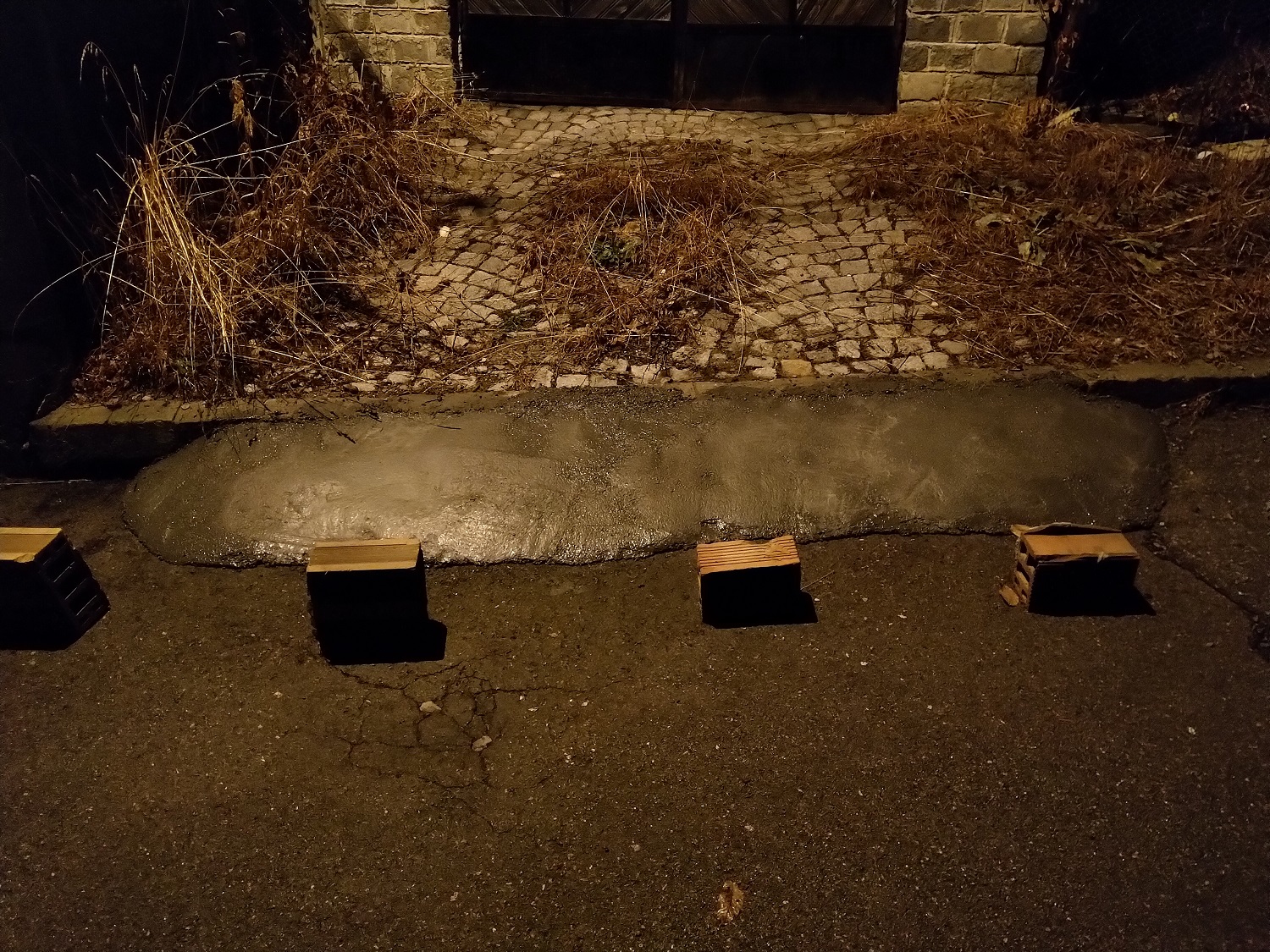Въобще не е никаква философия.Мозайка и цимент 1:1 разбъркваш ги в необходимата консистенция така, че да не тръгнат по улицата.Изчакваш 10-15 минути да втаса и пребъркваш пак и си оформяш рампичката.Арматура каквато искаш можеш да сложиш.Ще ти стъпи като цена горе долу на бетона в торби ама ще е много по здраво и солта трудно ще го разяде.