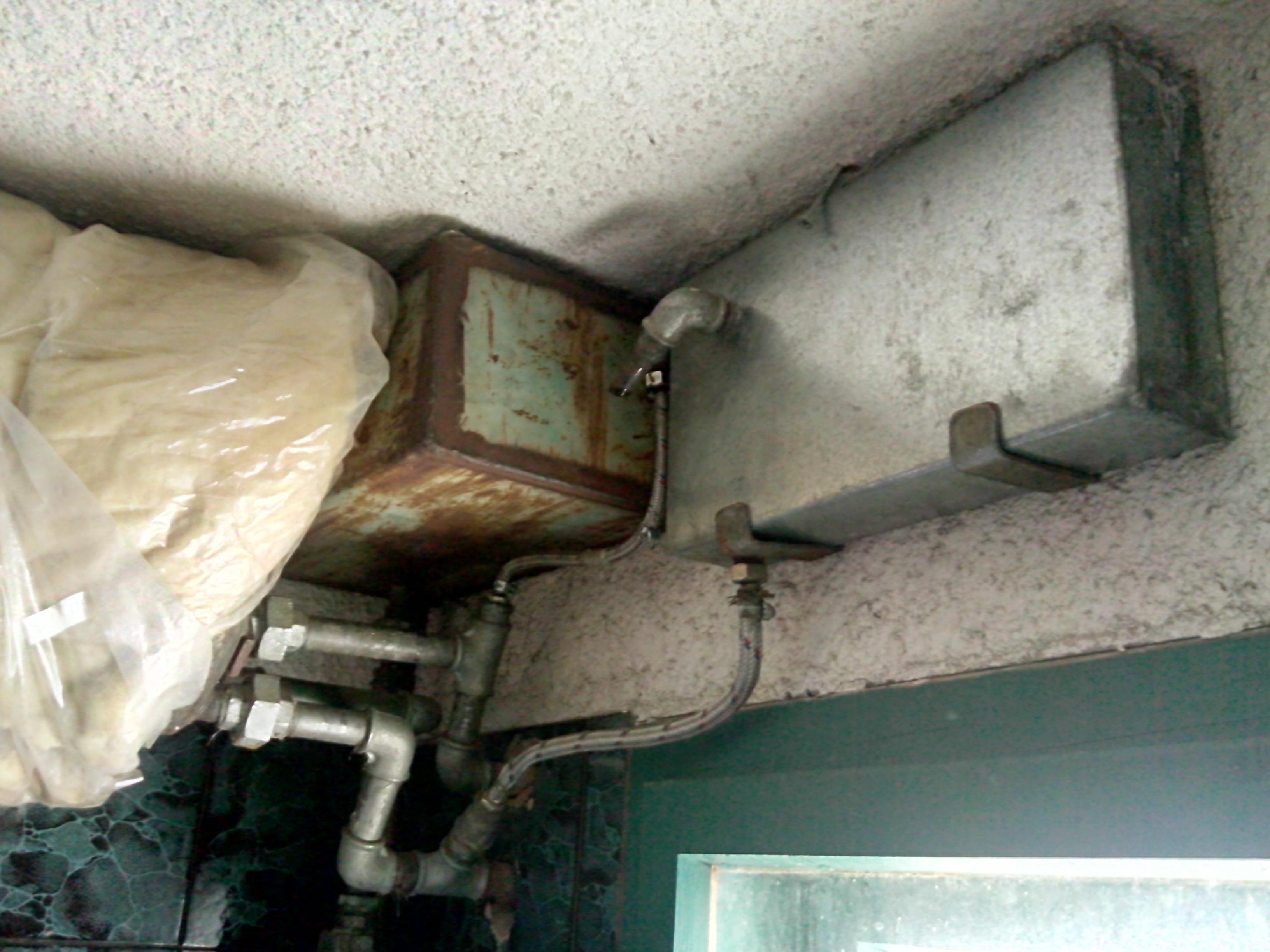 Този от поцинкованата ламарина е за слънчевата система. Ръждивият е за парното.